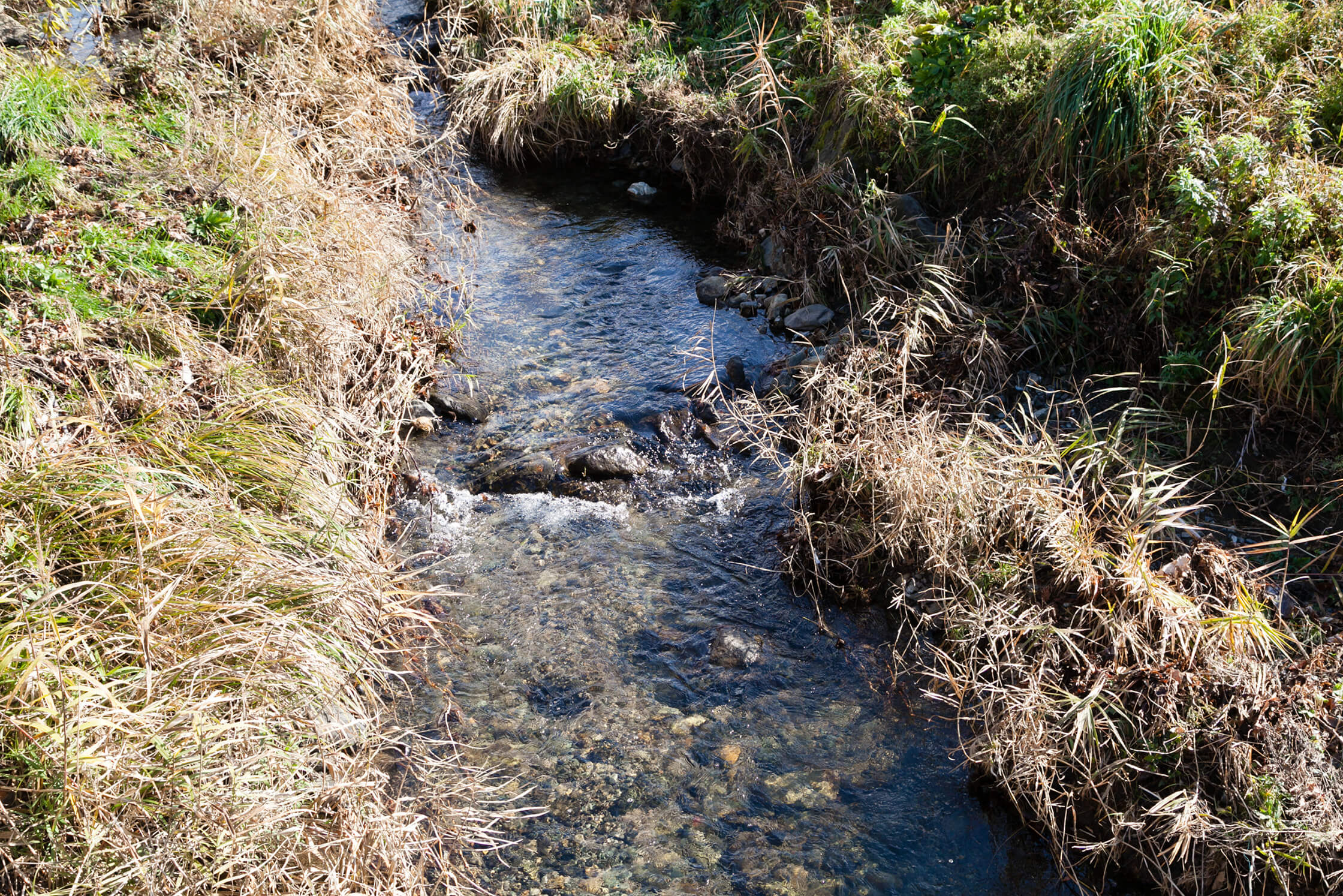 地元の人たちが馬洗淵(まりゃぶち)と呼ぶ、沢が出てきた。地名の通り、昔の旅人たちがここで馬を洗い、水を飲ませ、休憩したのだろう。清冽な水が、確かにゴロゴロと勢いよく流れている。友達は、これはいい音だなあと、聴き入っている。立ち止まって耳を澄ませると、いくらでも聞いていられそうな心地よい響きだった。