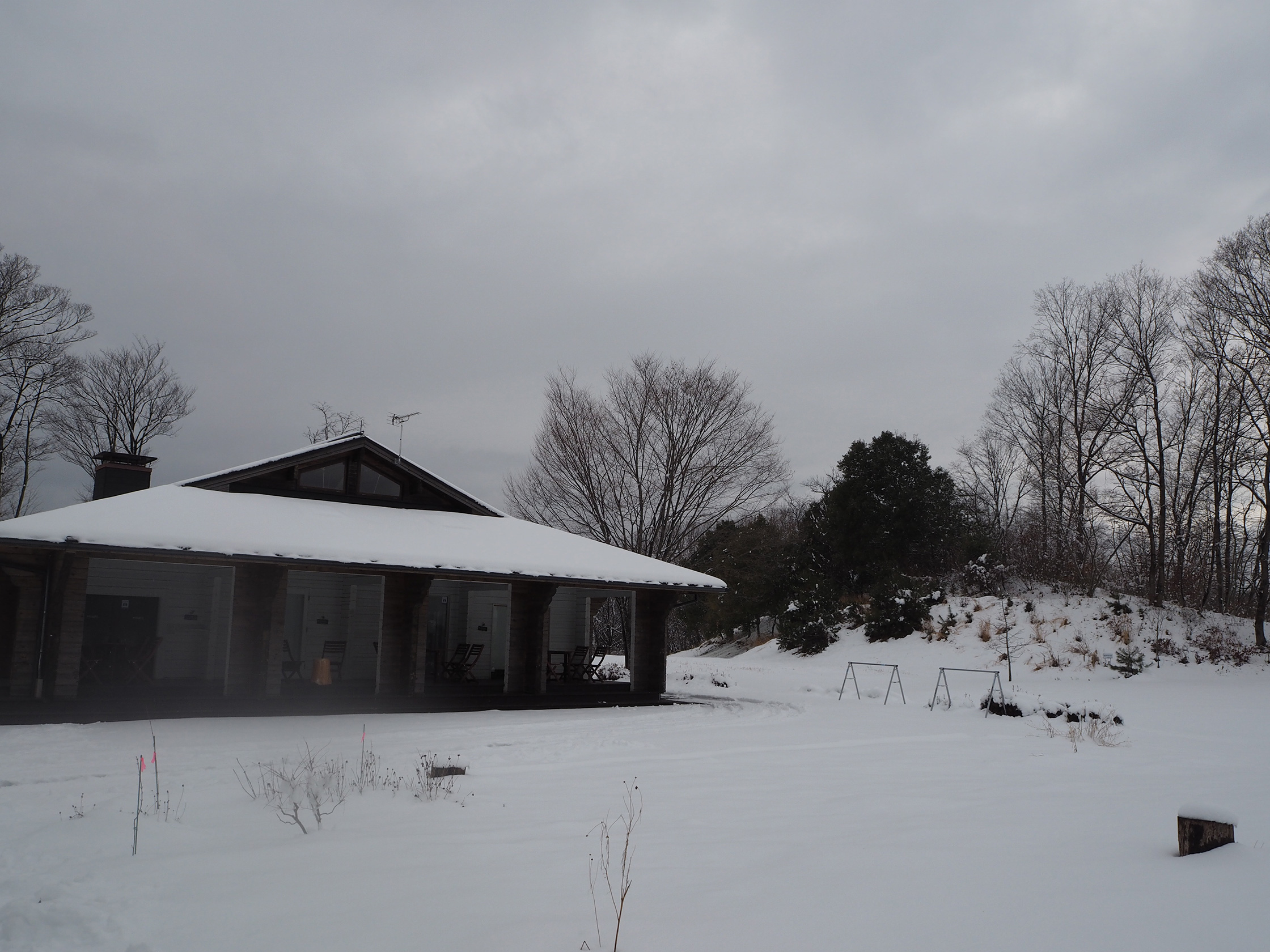 2月某日、東京でちらちらと雪が降った日、埼玉県秩父市の山麓は一面の銀世界だった。西武秩父駅から車でおよそ15分。秩父ミューズパーク内に駐車し、ひとけのない銀杏の並木道を少し歩くと、大きなログハウスが見えてくる。雪をかぶって白い屋根のログハウスを見て、僕は思わず声を上げた。