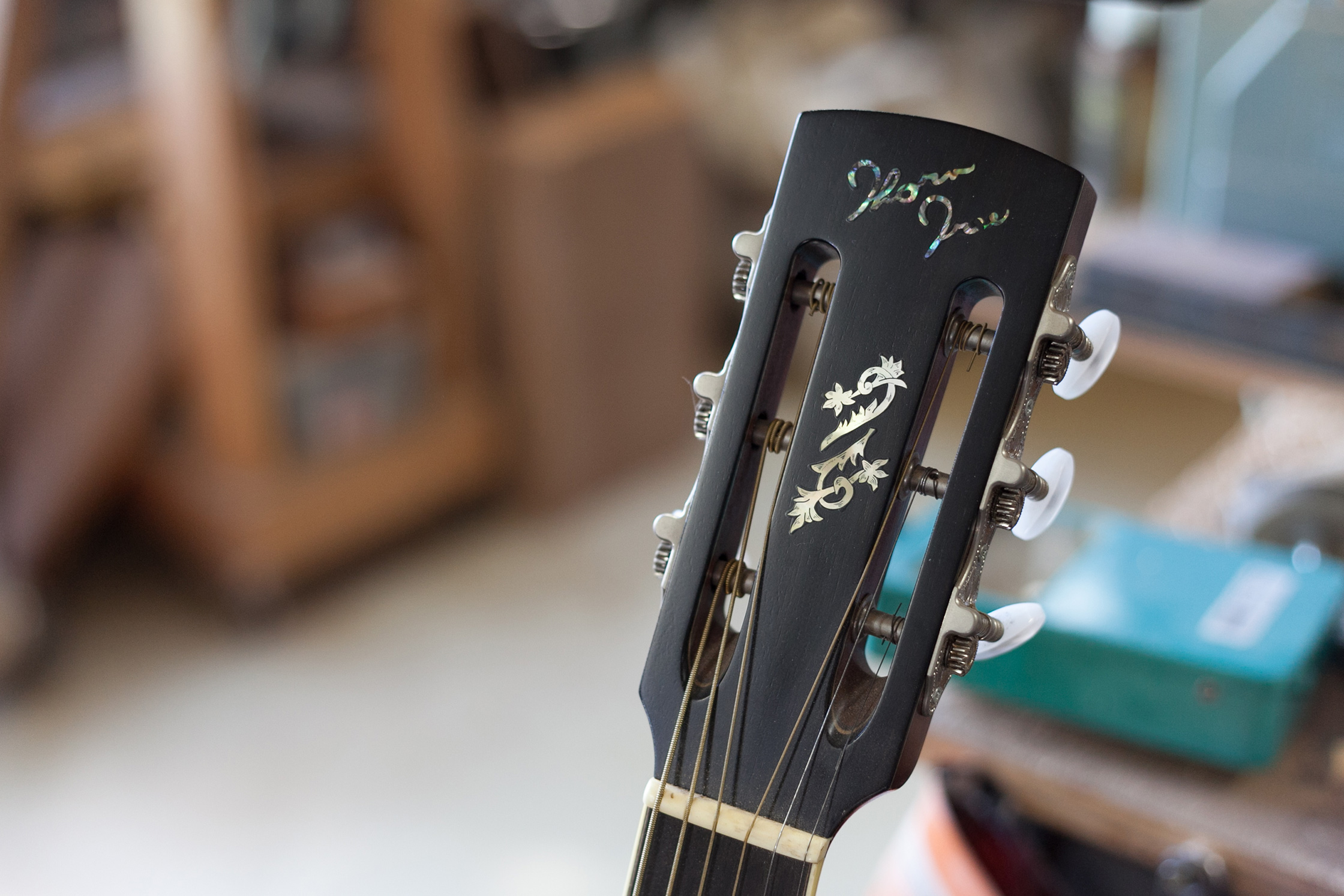インレイの役割はギターを美しくする、というだけではない。持ち主にとって大切なギターに、イニシャルや好きなものなどの「自分らしさ」を掘り込むという意味もあるのだ。斎藤さんはそんなギターの大切な一部分でもあるインレイの技術を独学で学び、ギターのインレイの象徴とも言えるソーンツリーを、この工房の名前に冠したのだった。
