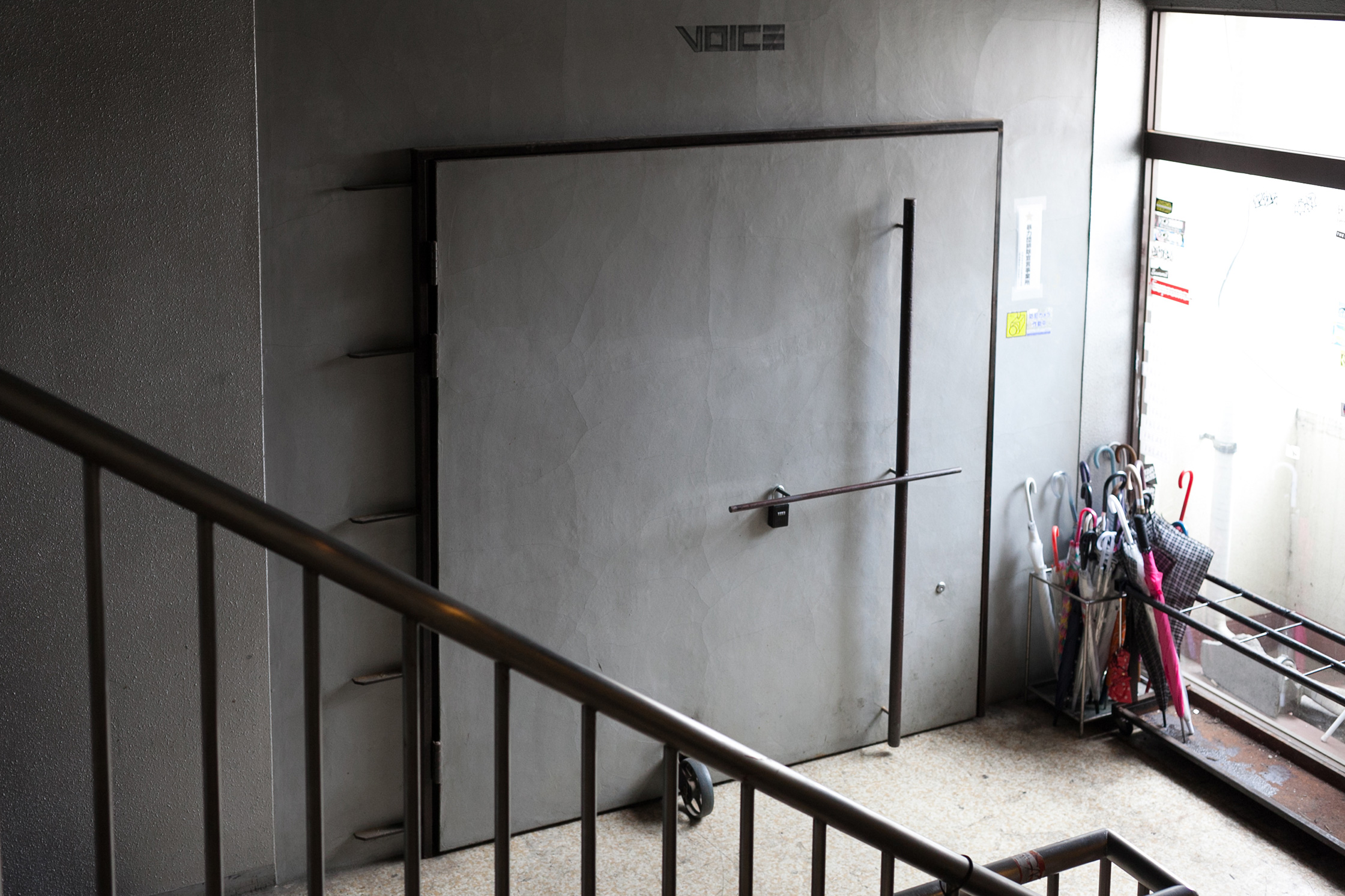 昼間はがらんとした大工町の雑居ビルを、エレベーターで上がる。4階で降りると、大きな鉄の扉で閉じられたクラブ、VOICEがある。扉を開けると鈴木洋平さんが待っていてくれた。