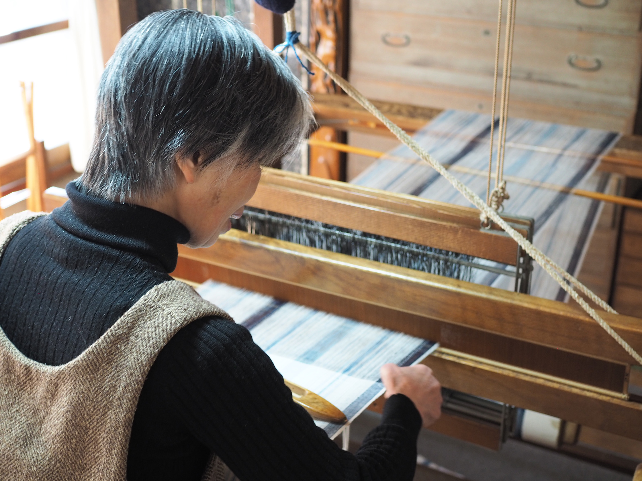 「私、織物があってよかったって思います。他にやることがなかったら、きっとボーっとしちゃっていたわね。だから健康で、できるあいだはずっと織り続けたいの」