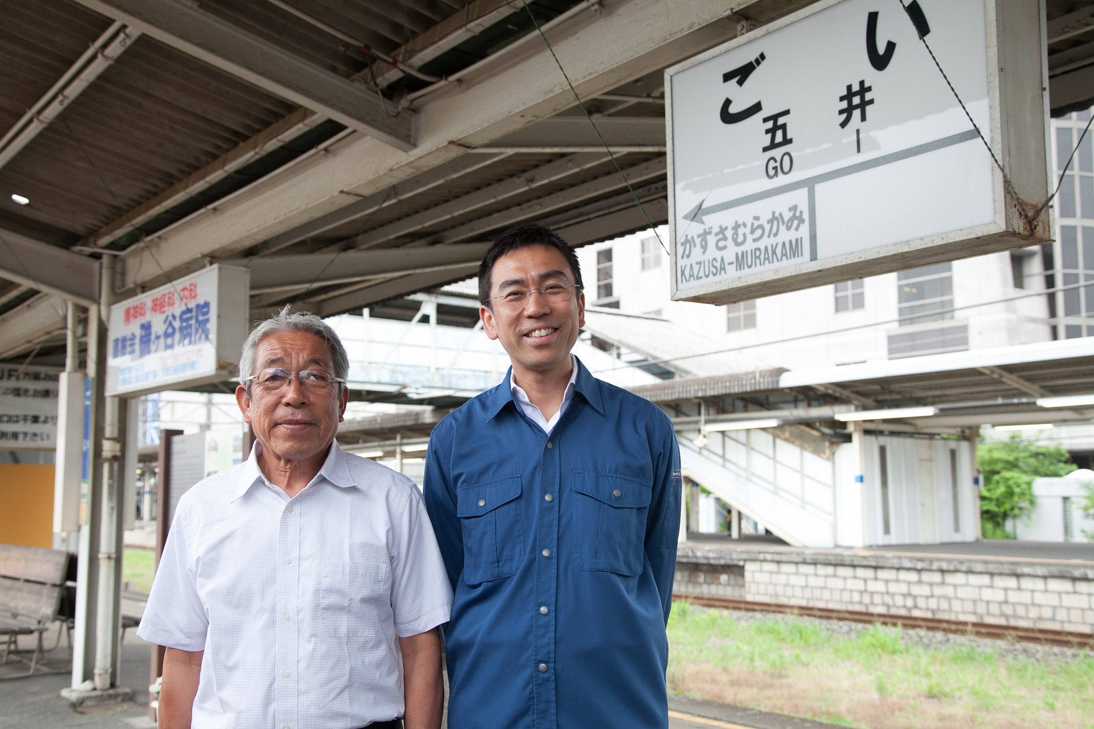 そろそろ9時25分発の列車の時刻が迫ってきた。石川社長と鉄道部の黒川さんに見送られながら、いよいよ五井駅を出発!