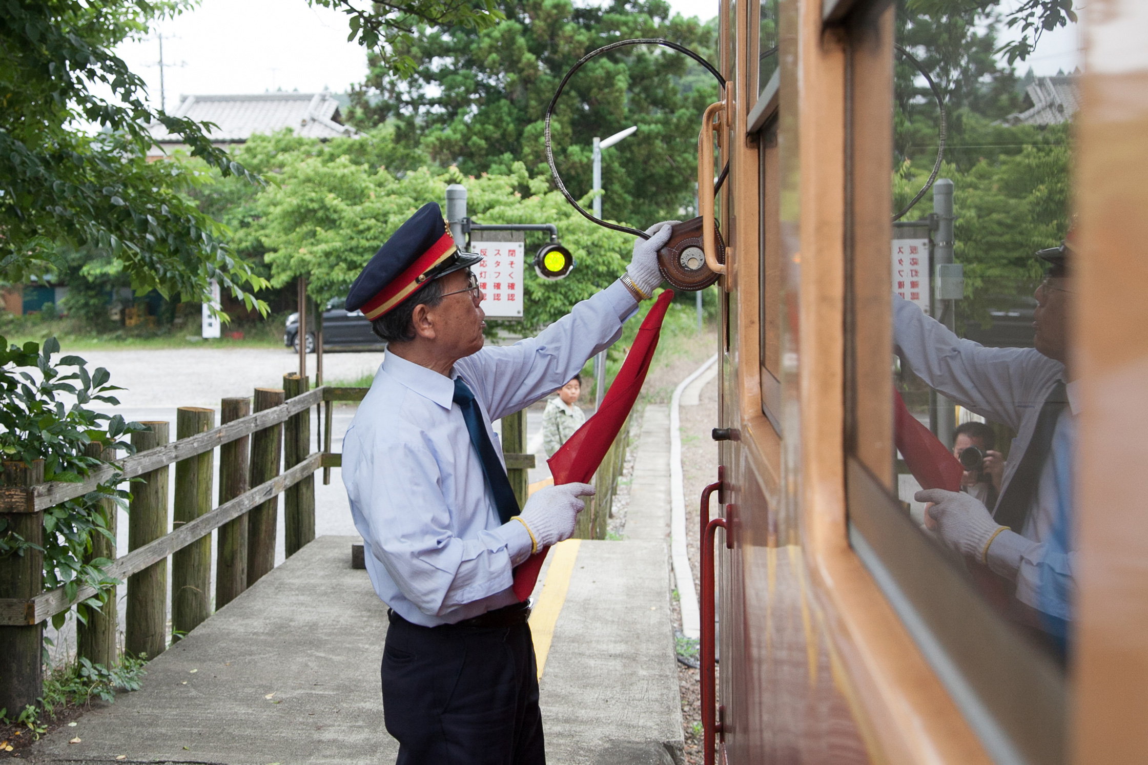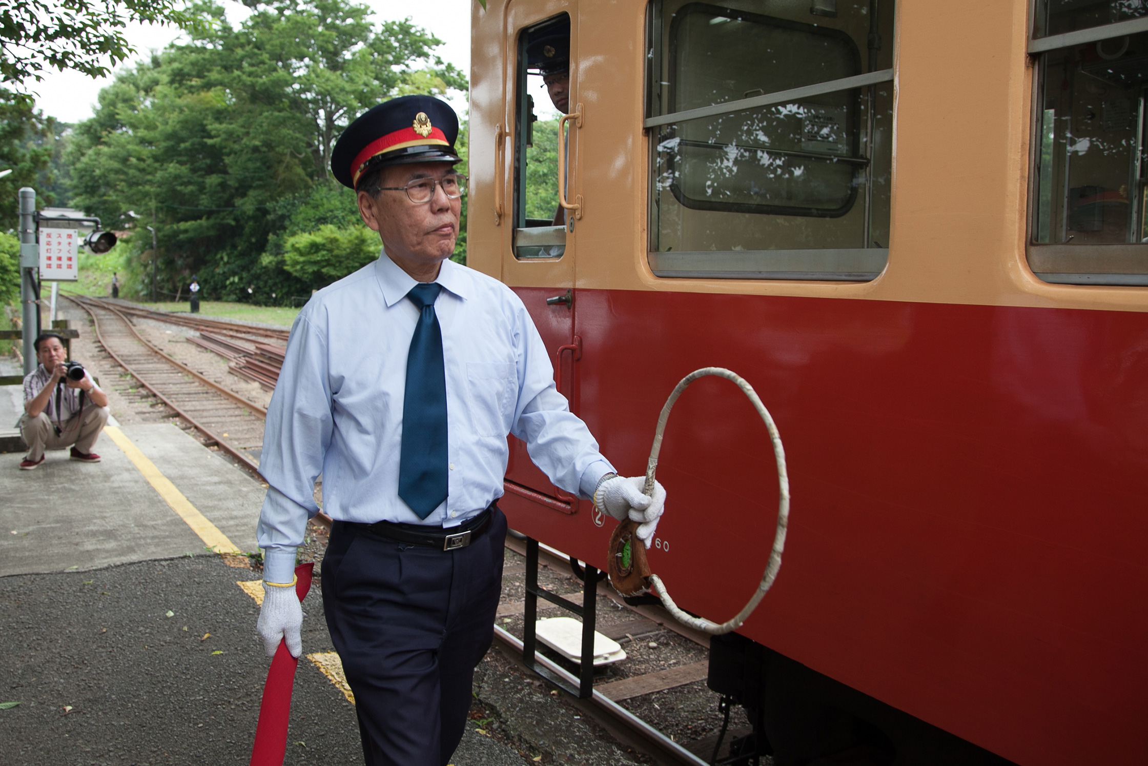 さらにこの駅ではもう一つ、珍しいものが見られる。「タブレット交換」である。タブレットとは、要するに通行手形のようなもので、単線の小湊鉄道で車両同士が衝突しないように運行するための大切なものだ。輪っかのようなケースに通券などが入っているものをまとめて「タブレット」と呼んでいる。閉塞区間(すれ違いが出来ない区間)に、ひとつしか存在しないので、それを持つ車両は安心して運行できる。里見駅と上総牛久駅では、このタブレットの交換があるのだ。