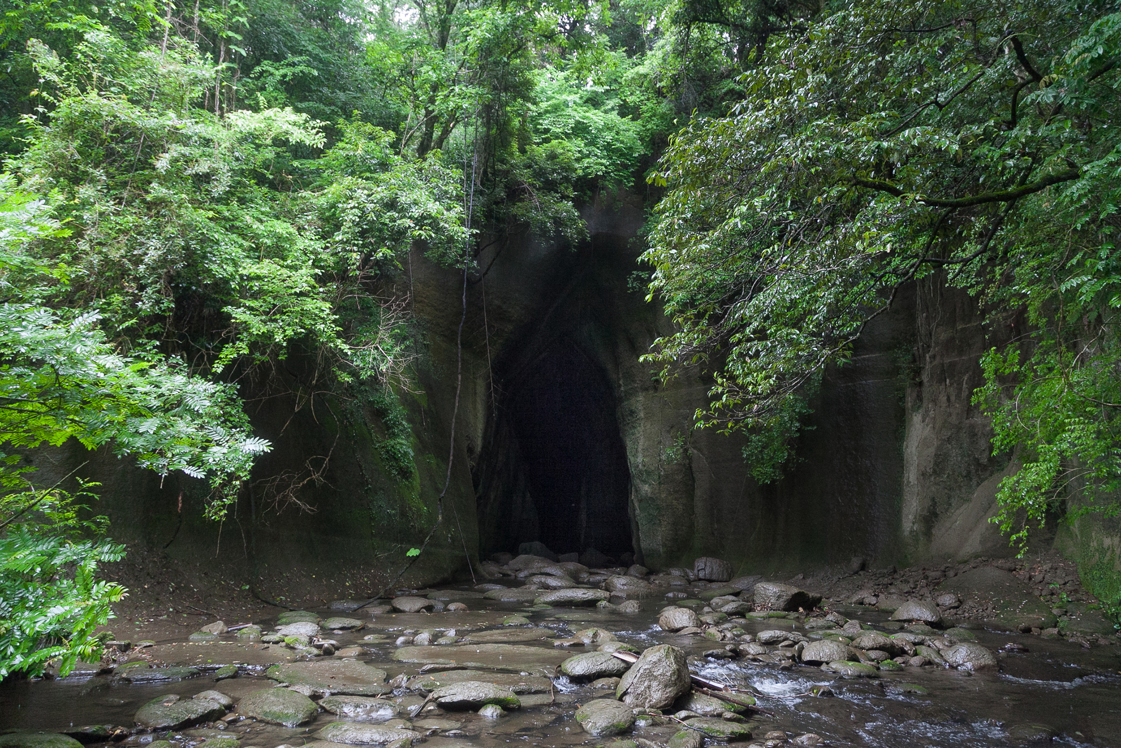 「ここは私も初めて見ました」という、市原市の忍澤さん。昔の川廻しの素掘りトンネルが、時間を経て流れに削り取られ、大きくなっていったのだろう。そしていつしか、地元の人にも忘れ去られてしまったのかもしれない。