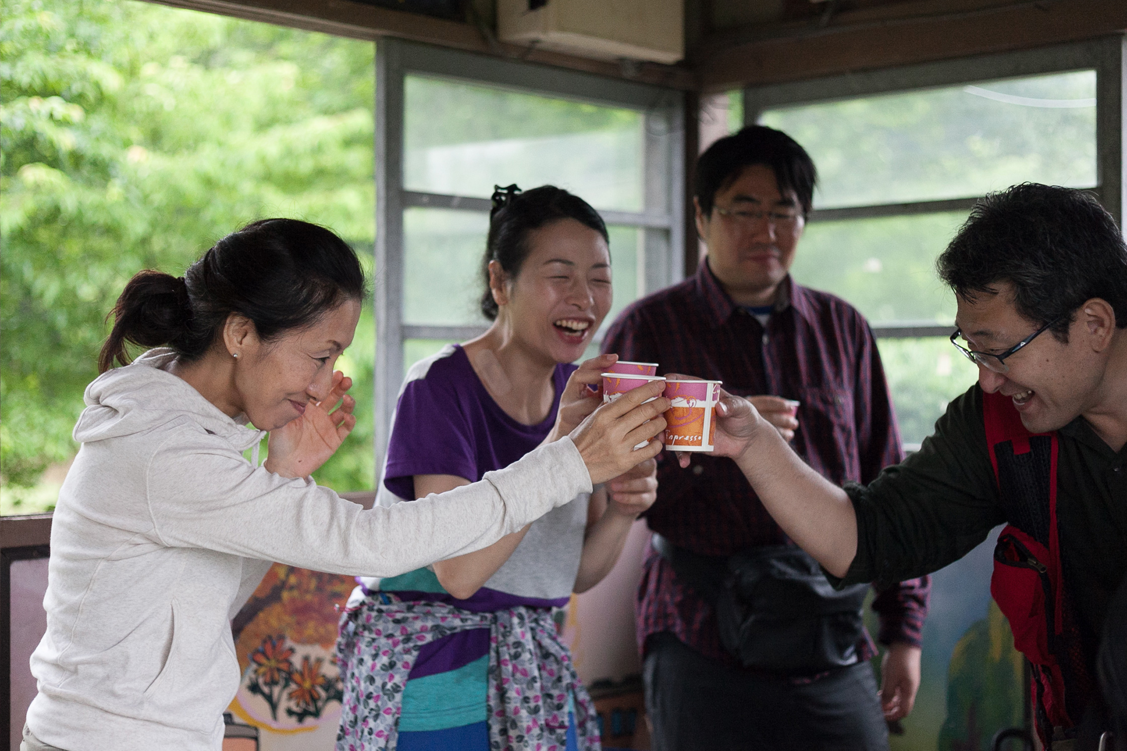 「この雨の中、歩いてきたの? すごいねえ」と驚いた松本さんは、列車を待っている私たちのために、駅舎まで暖かいコーヒーがたくさん入ったポットを持ってきてくれた。ふだんはギャラリーに立ち寄る人たちにもコーヒーをふるまっているという松本さん。雨の中を歩いてきた体に、思いがけないコーヒーのおいしさが沁みわたった。
