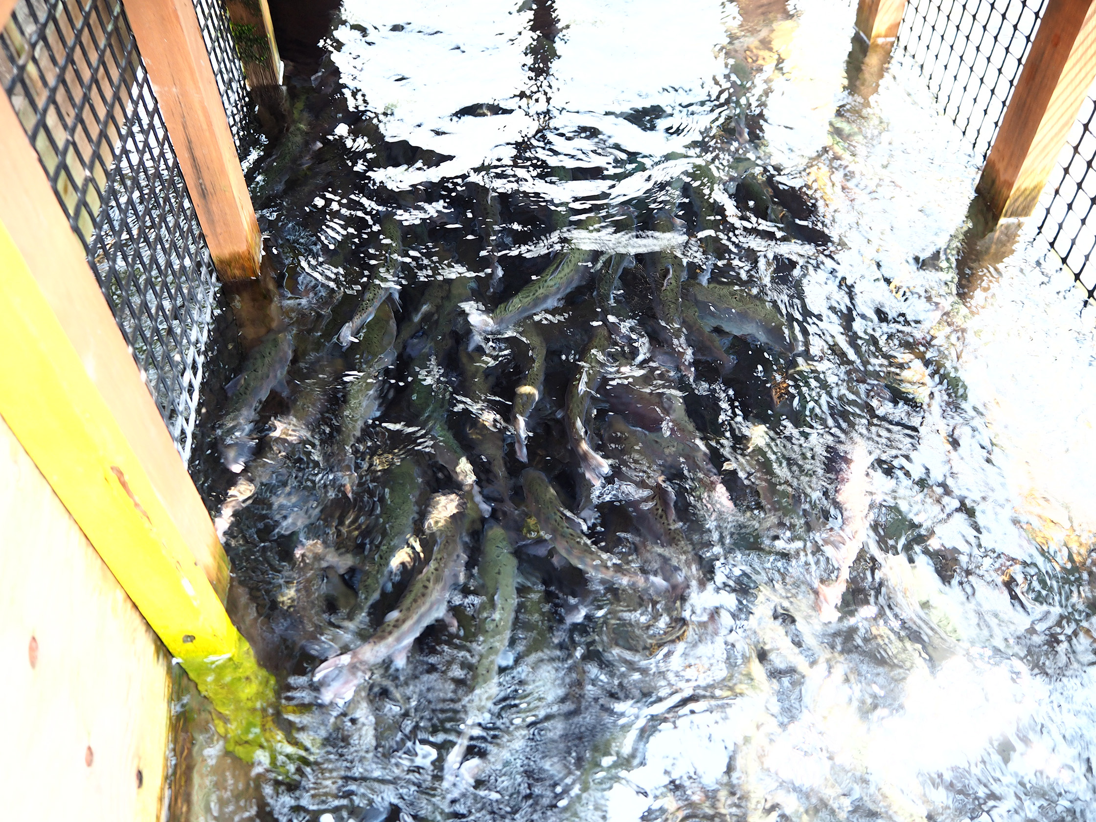 「そう。阿部川フォーラムの時代から。何割かは漁業組合に卸してエサ代にしてるけどね。世話人会のメンバーみんなで世話してるんだ。エサをあげたり、掃除をしたり。それで水辺の楽校が始まると、2年ぐらい育てて大きくなった魚を連れてくるんだよ」