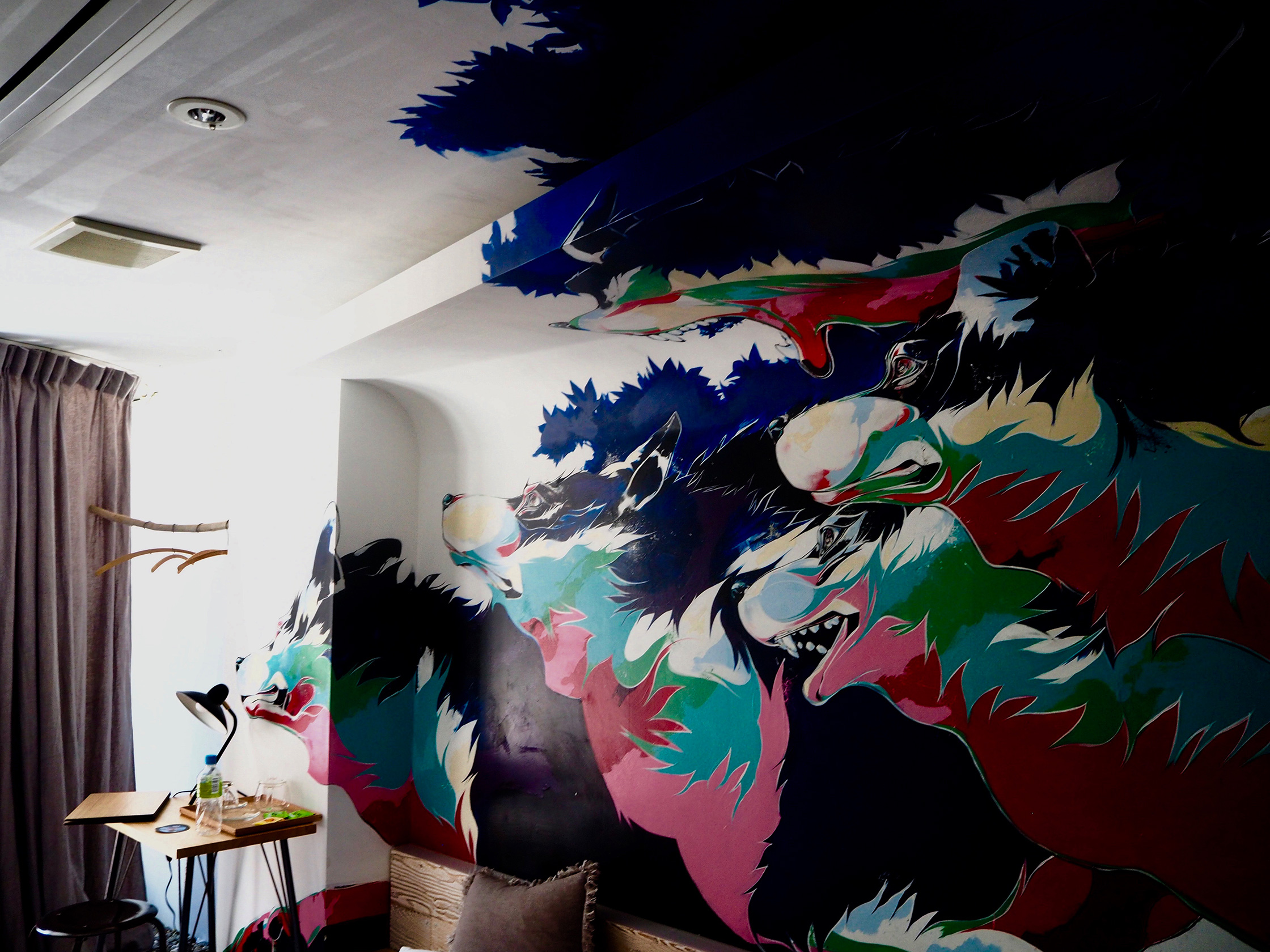 作品が壁に描かれているというよりも、作品世界に包まれている感じ。