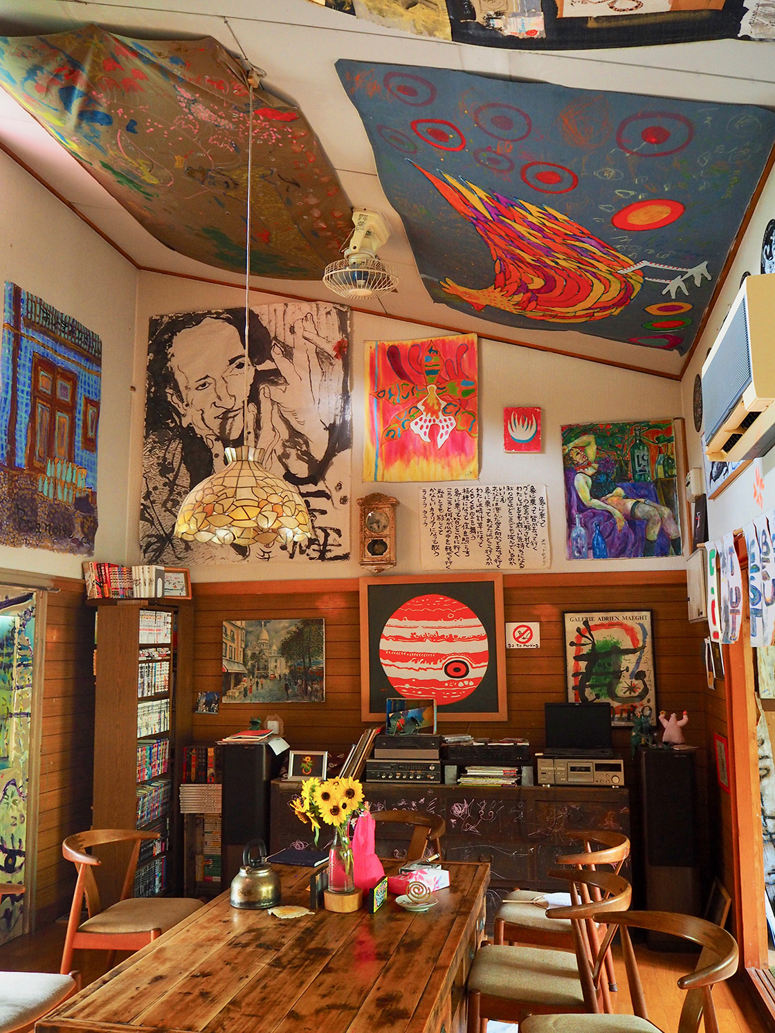 パリからやってきたアヴァンギャルドな雰囲気の夫婦は、最初の頃こそ集落の人にも驚かれたが、やがて受け入れられた。喫茶室とヨガ道場を営みながらじっくりと作品制作を続け、男の子にも恵まれた。子どもが生まれると、自然に地元の人々との交流も密になっていった。