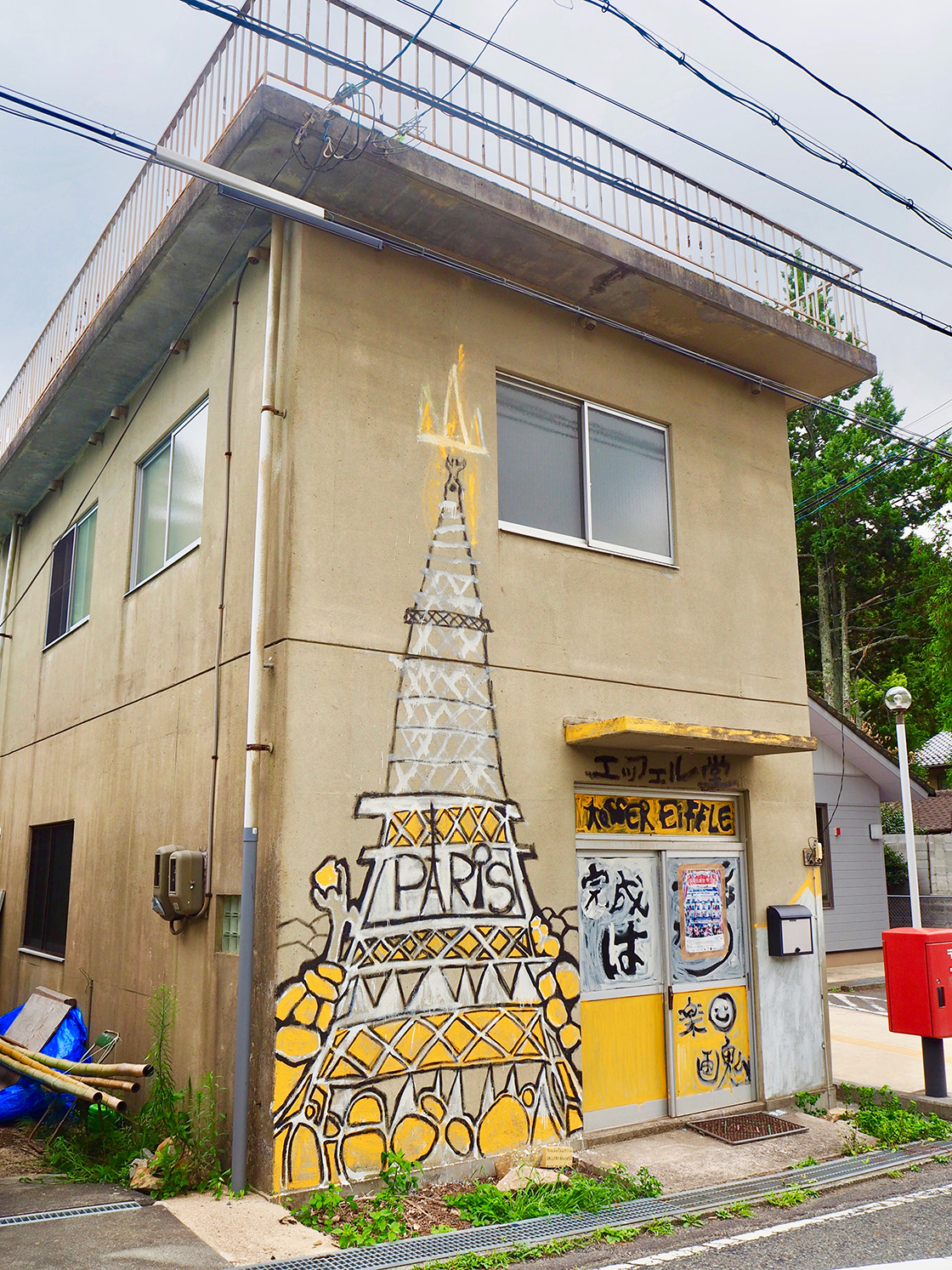 しかしこの時、誰もが全く予想しなかったことが起きた。芸術祭に東京から参加していたアーティストの土屋洋介さんが、美咲町に惚れこみ、なんと自宅を購入(それも十万円!)。地域おこし協力隊として移住を決めたのだ(土屋さんもまた、パリに8年も住んでいた59リヴォリ出身のアーティストである)。土屋さんは、その購入した建物を改装し、「エッフェル堂」というアートスペースをオープンしたいという夢を持つ。