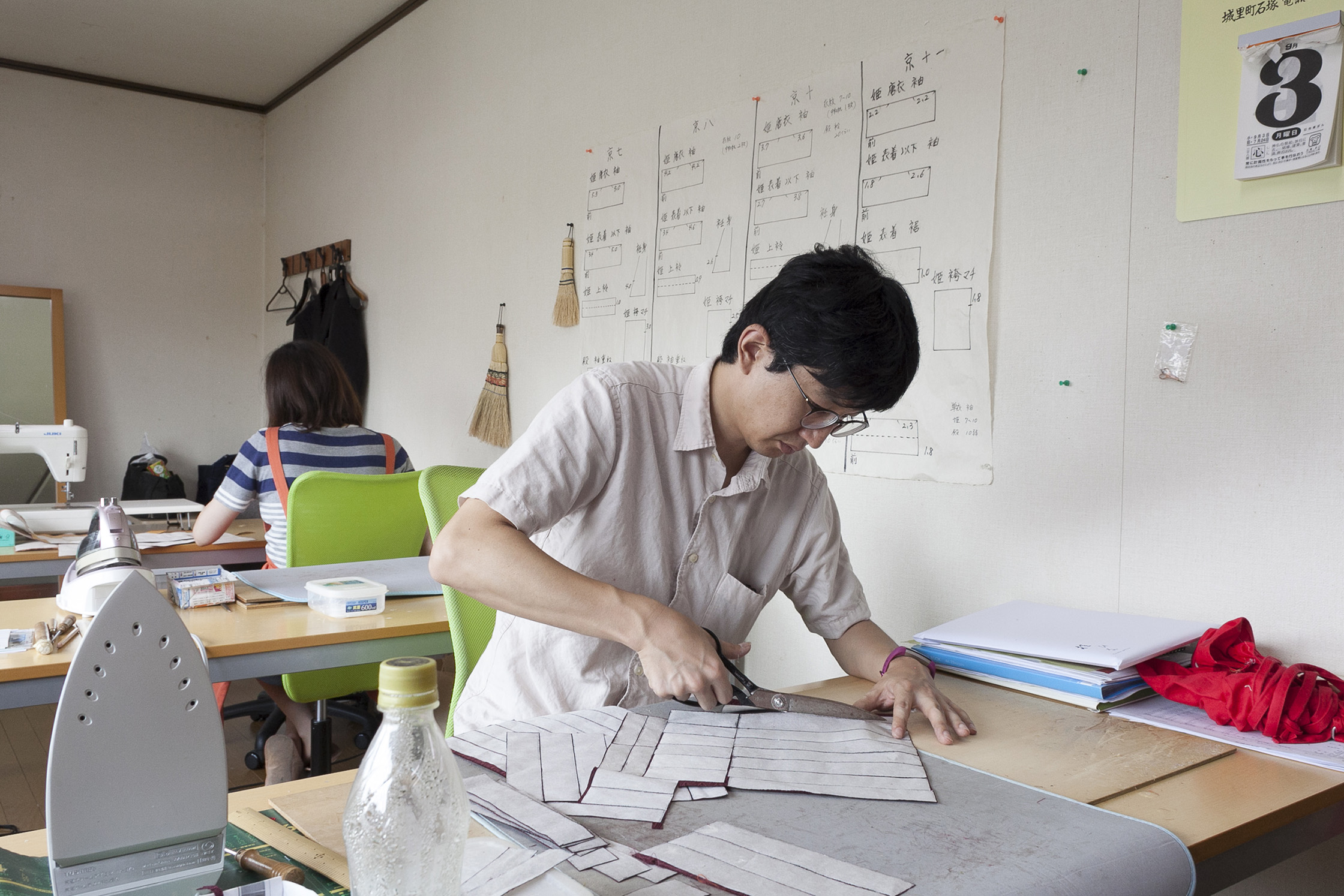 雛人形は一年をかけて制作する。まず3月から6月にかけては、針金と藁を素材にした「藁胴」とよばれる人形のボディを作る下仕事が始まる。7月から10月にかけては、いよいよ、着物の準備だ。京都など各地から取り寄せた美しい生地を裁断し、さらに生地に張りを持たせるために裏面に和紙を貼る作業、そして縫製などが続く。