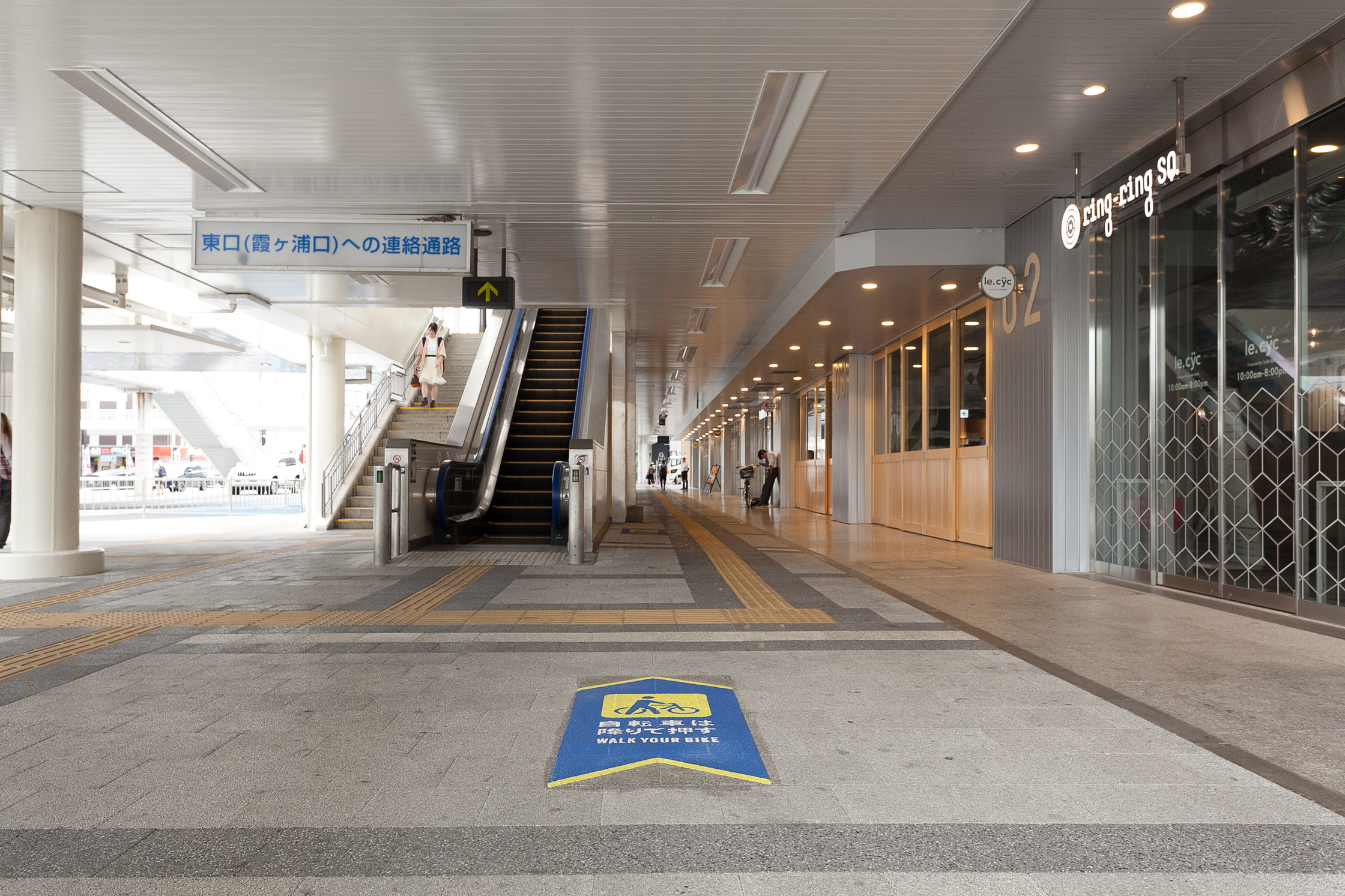 久しぶりに土浦の市街地を訪れてみると、昨年の今頃と比べて、JR土浦駅周辺は再開発がだいぶ進んでいるようだ。特に土浦駅の西口には新しい市立図書館やギャラリーができていて賑わっている。そして今回の目的地「りんりんスクエア土浦」も、すぐに見つけることができた。なぜならそこはJR土浦駅に直結していたからだ!