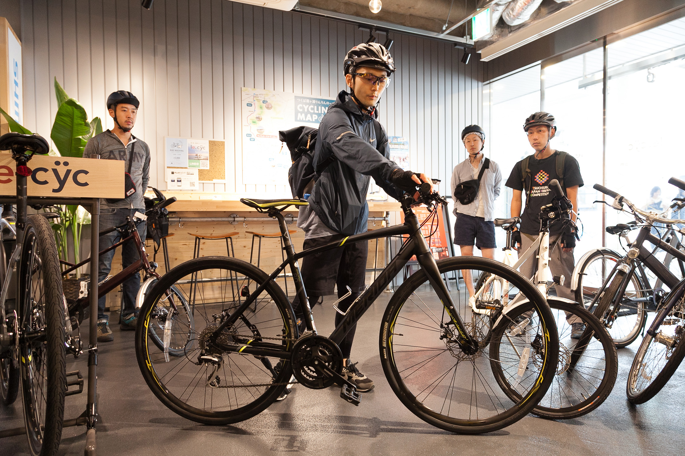 さて今日の私は、土浦のサイクリング事情を体感するために、土浦市主催で、大澤さんと井上さんも企画に関わっている「散走ツアー」なるものに申し込んでいるのだ。「散走」という言葉は耳慣れないものだったが、土浦市のサイトに掲載されていた説明を読むと、どうやら私のようなサイクリング初心者でも参加できるサイクリングらしい。最新式のレンタサイクルと、昼食、コーヒー休憩がついているこのツアー、まちなかの16キロほどの距離を、集団で走るという。