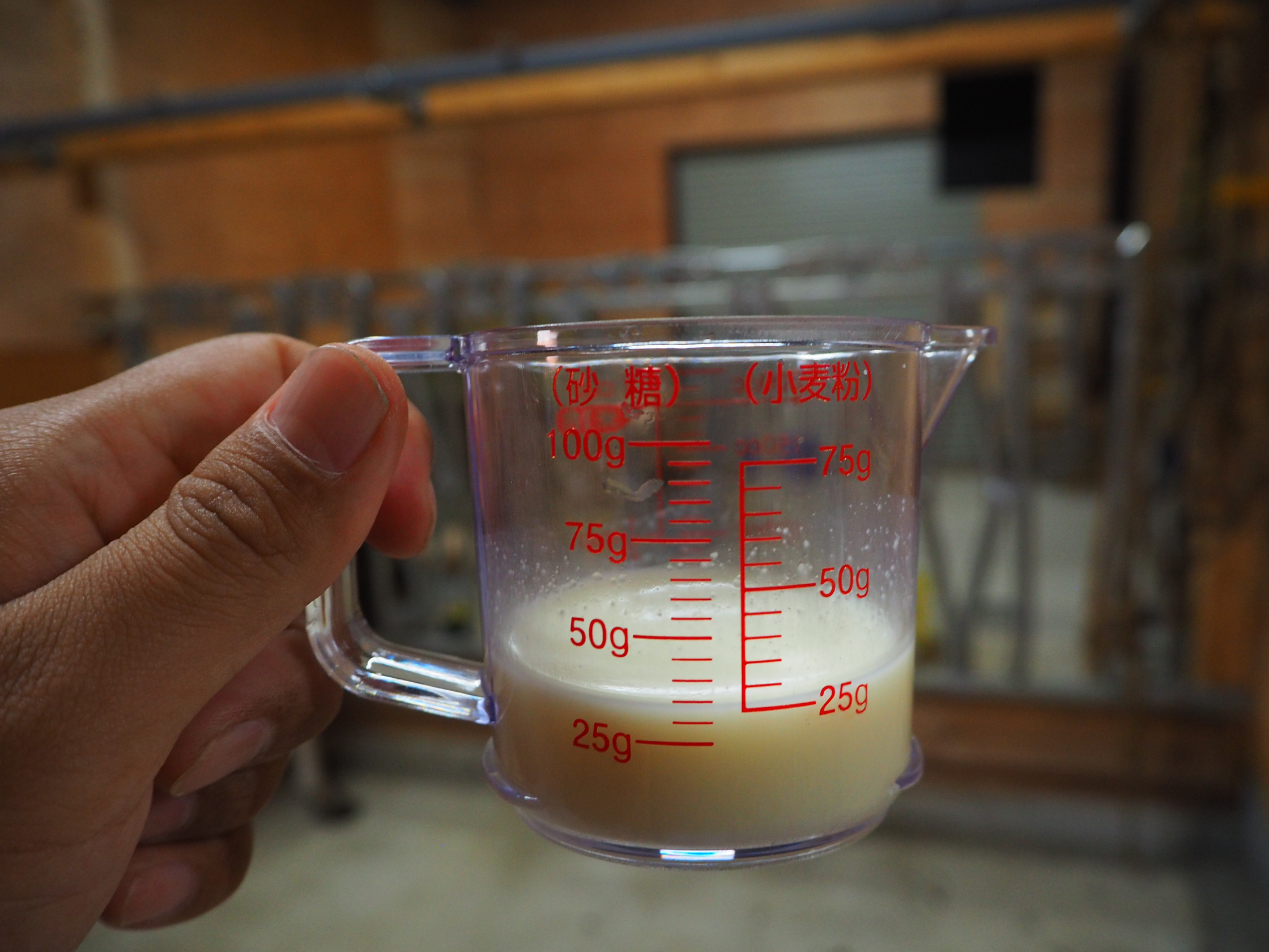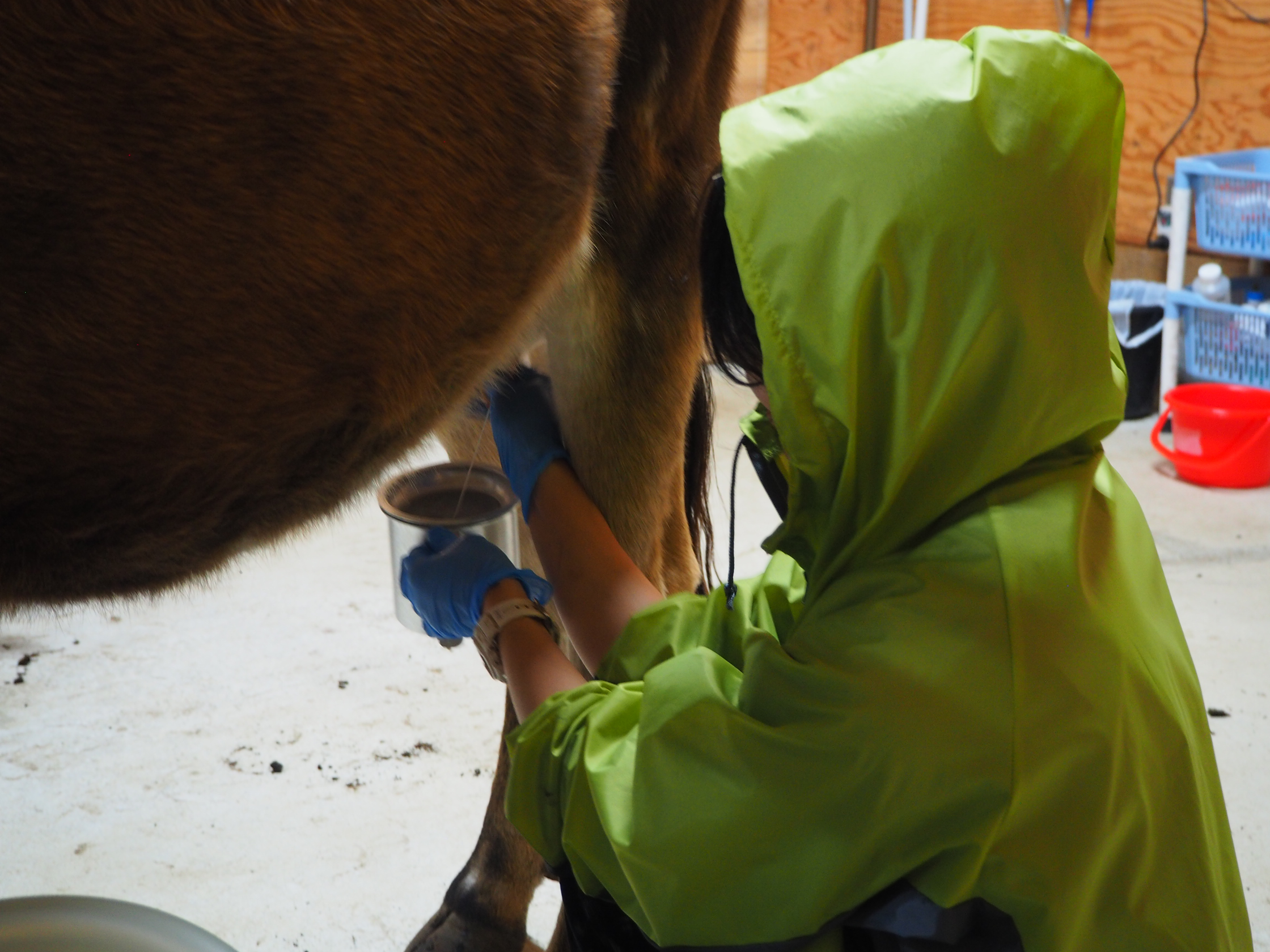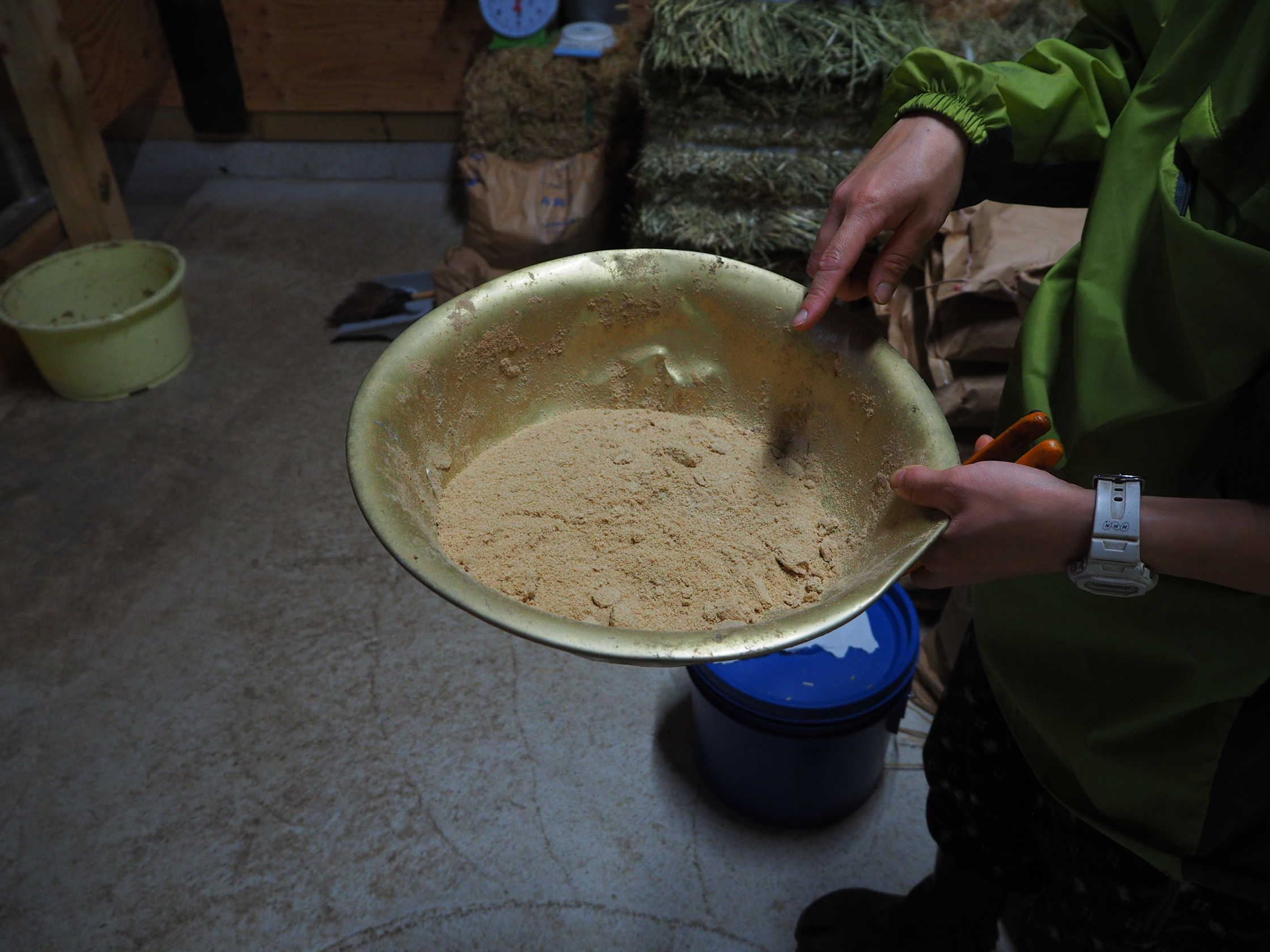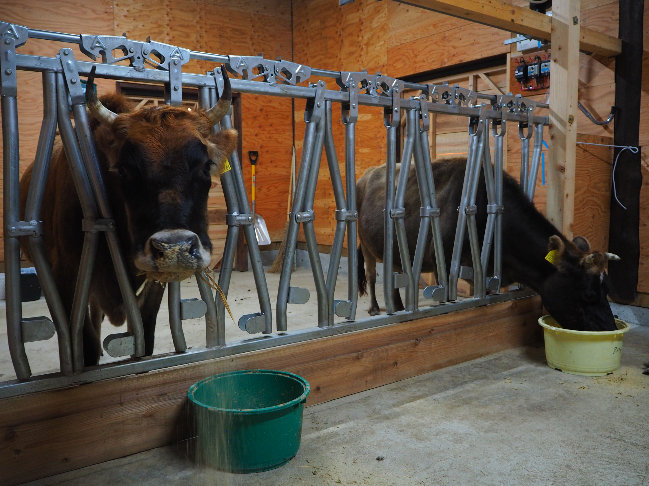 搾乳室には、山北町のお米屋さんからもらった米ぬか、山北町のお豆腐屋さんからもらったオカラ、仲間内でやっているという田んぼでとれた稲わらがおかれていた。これらは牛のおやつになる。搾乳室は近所の設計士が設計し、作ったのは地元の大工さんだ。