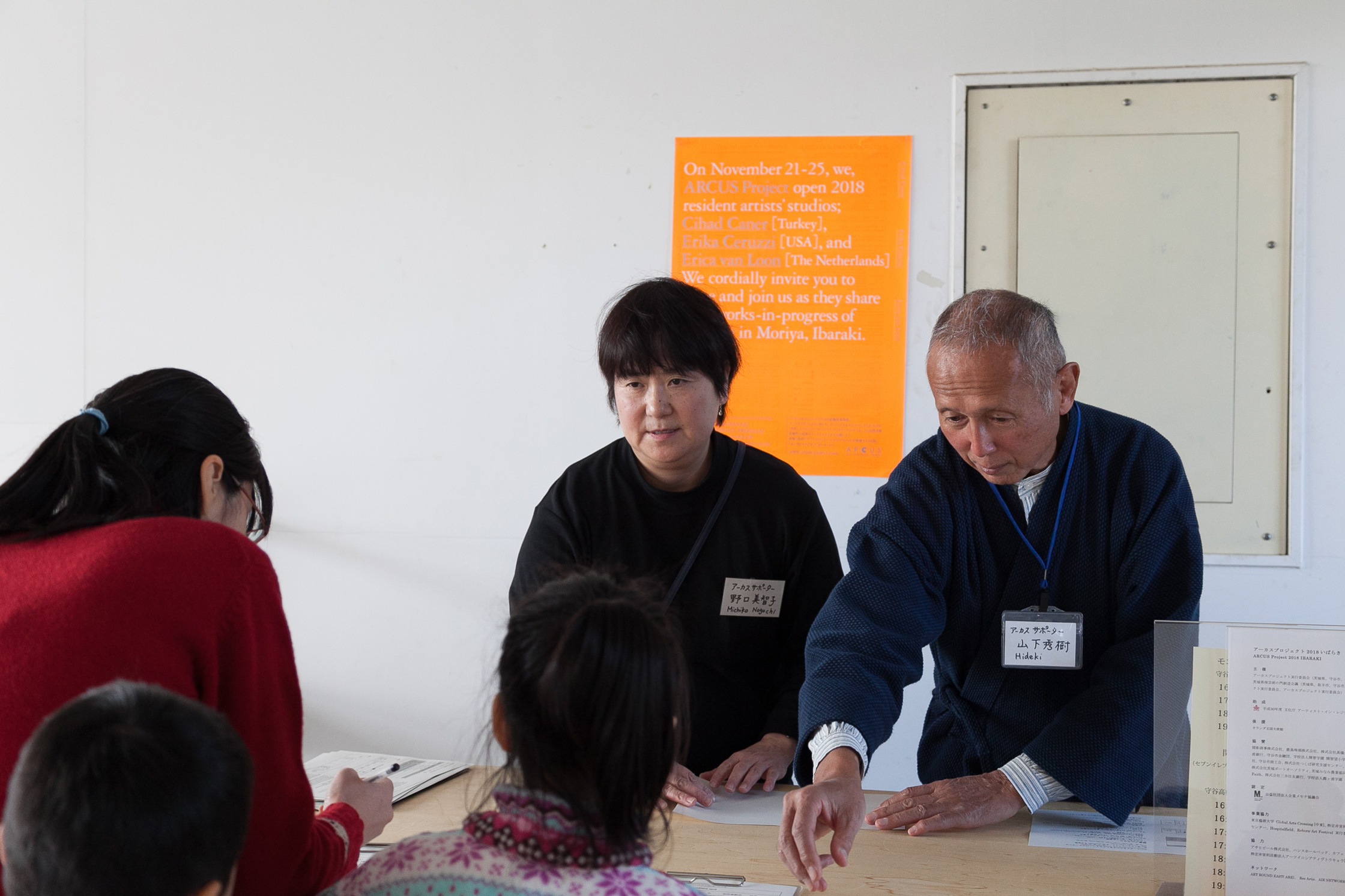アーカスの活動はコーディネーターなど専門のスタッフの他に、近隣から通ってくるボランティアの人たちによって支えられている。今日も輿石さん、野口さん、山下さん、山野井さんという4名が、子供たちの受付などのサポート業務をこなしていた。「ここでの活動は、普段の生活とは違って、日常では味わえないアーティストとの関わりがあって楽しいですよ」というのは、お隣の坂東市から通っている野口さん。