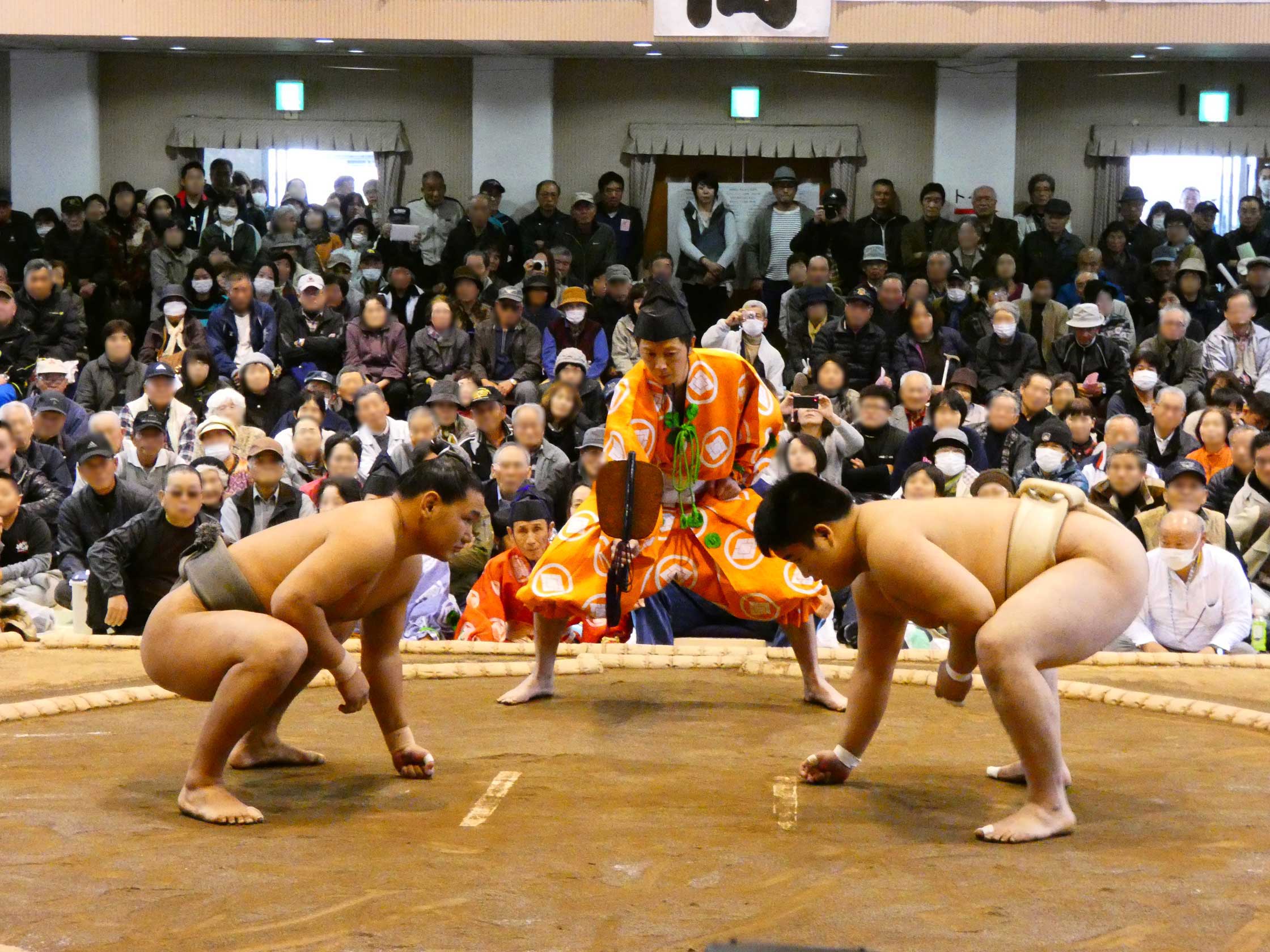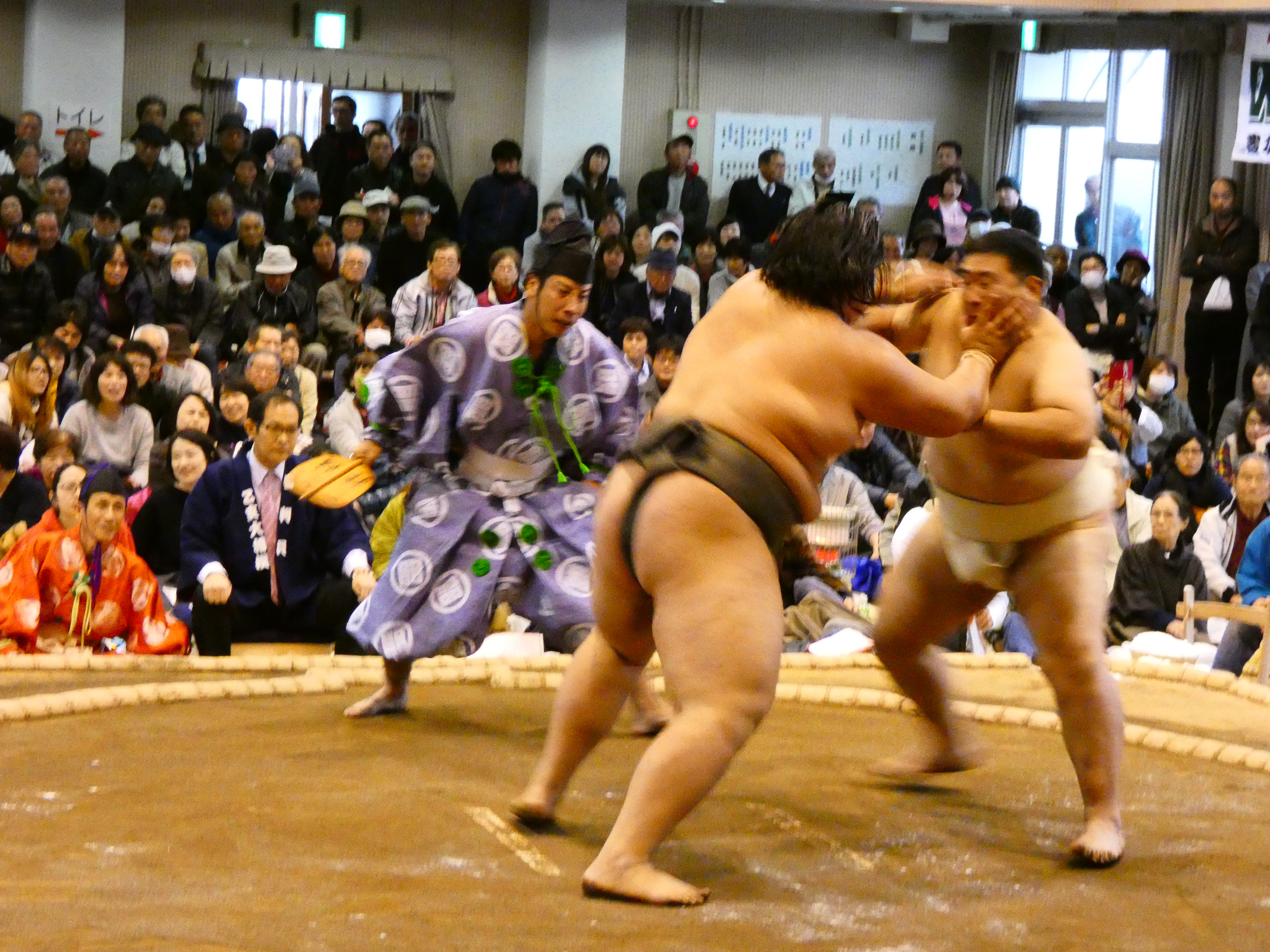 「手をついて。はっきよい、のこったのこった! 押し出しまして、住木の勝ち!」