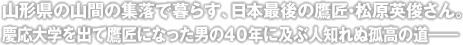それは、名もなき男が40年かけて追い求めた業の極致、ひとりと一羽の圧倒的な一体感を目の当たりにしたからかもしれない。