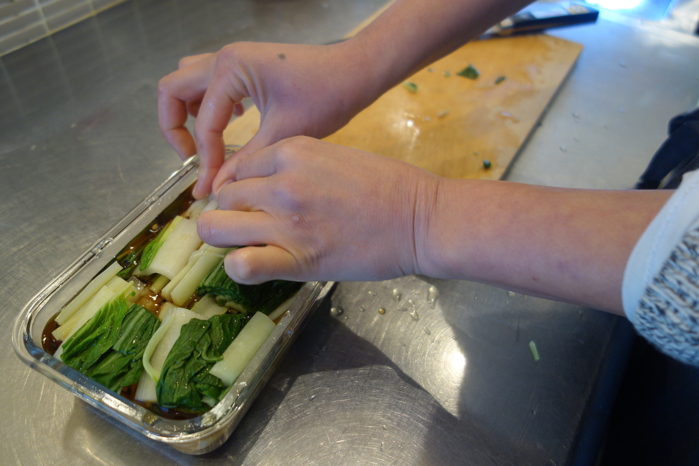 指摘されて気づいたのだけれど、私は、ずいぶんとゆがんだ姿勢で野菜を切っていたらしい。「足は90度くらいに開いて立って、丹田を前にむけて背筋を伸ばしてね。そうすると姿勢がよくなって疲れにくいし、丁寧に向き合えるから」(藤巻さん)