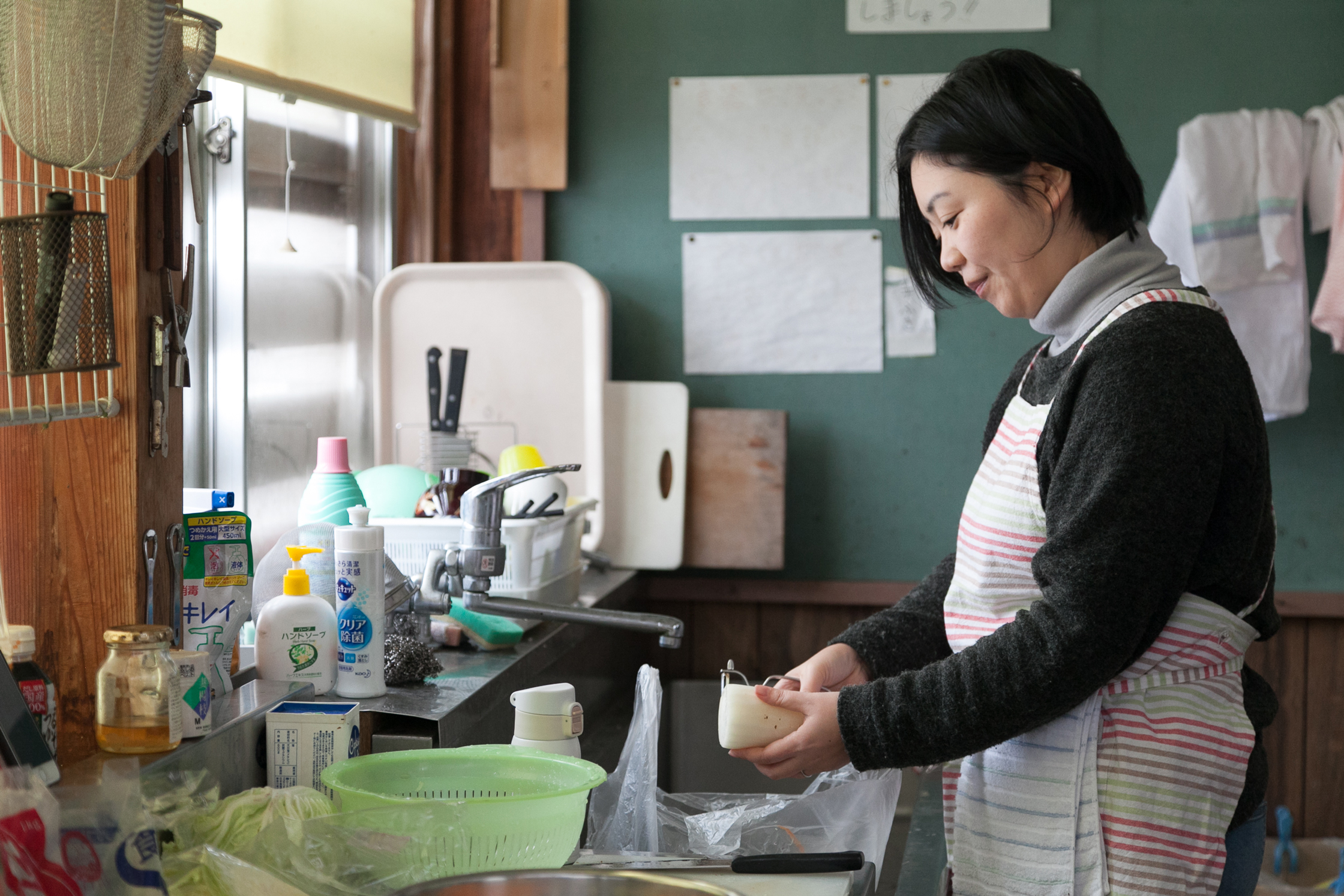 1対5のチームに分かれ、作業をしている中、私は分校の中に戻り、キッチンを覗いてみた。かまくらづくりの後、みんなで食べる夕飯の鍋を、美佳さんが仕込んでいたのであった!