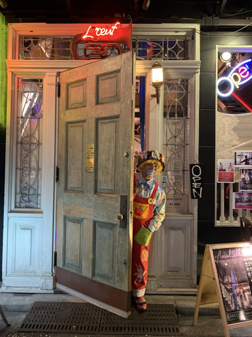 目抜き通りの「野毛小路」を歩いていると、ひときわ異彩を放った店が目につく。怪しいピエロが待ちかまえ、「おいで、おいで」となかに誘う。