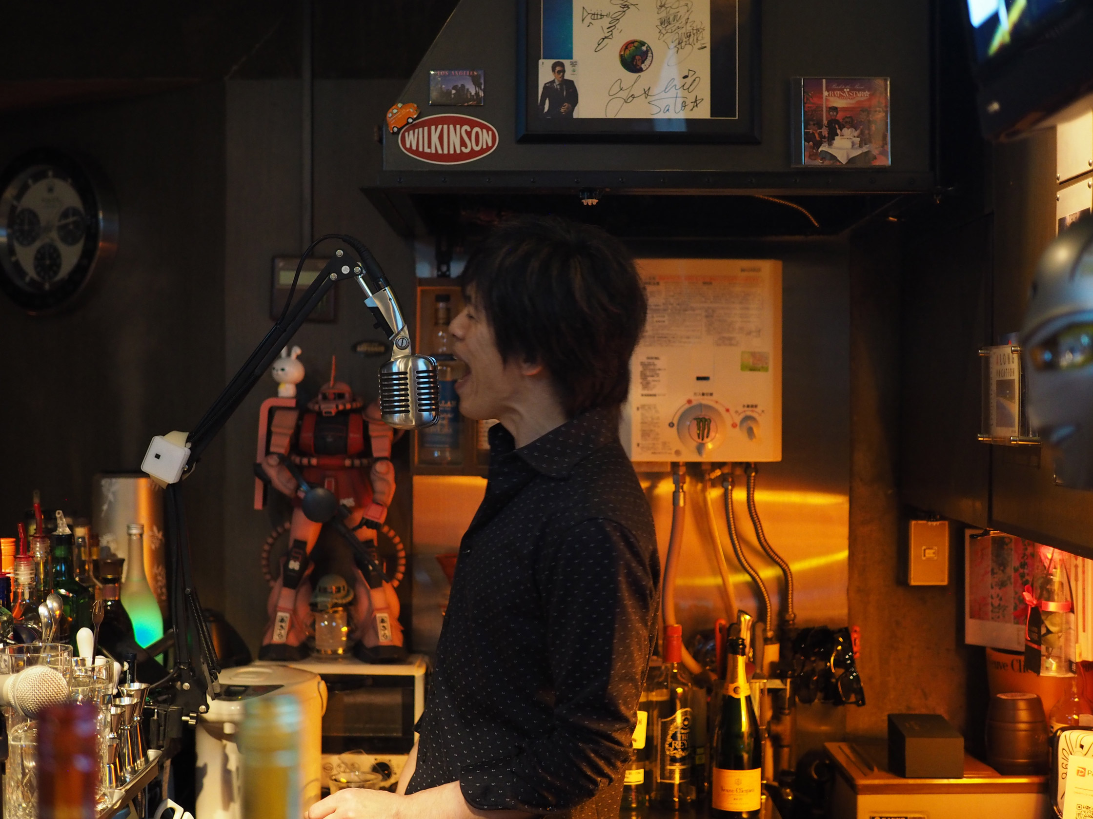 ところが、サビで急に声の厚みが増した。カウンター内を見ると、石堂さんが備え付けのマイクでハモってくれている! 手元は忙しそうに動かしながらも、しっかりと私と一緒に歌ってくれている。歌いやすさに加えて、その心地良いこと。カラオケでも電子音でハモリが入るが、それとは比べ物にならないくらい気持ちが乗ってきて本気で歌える。