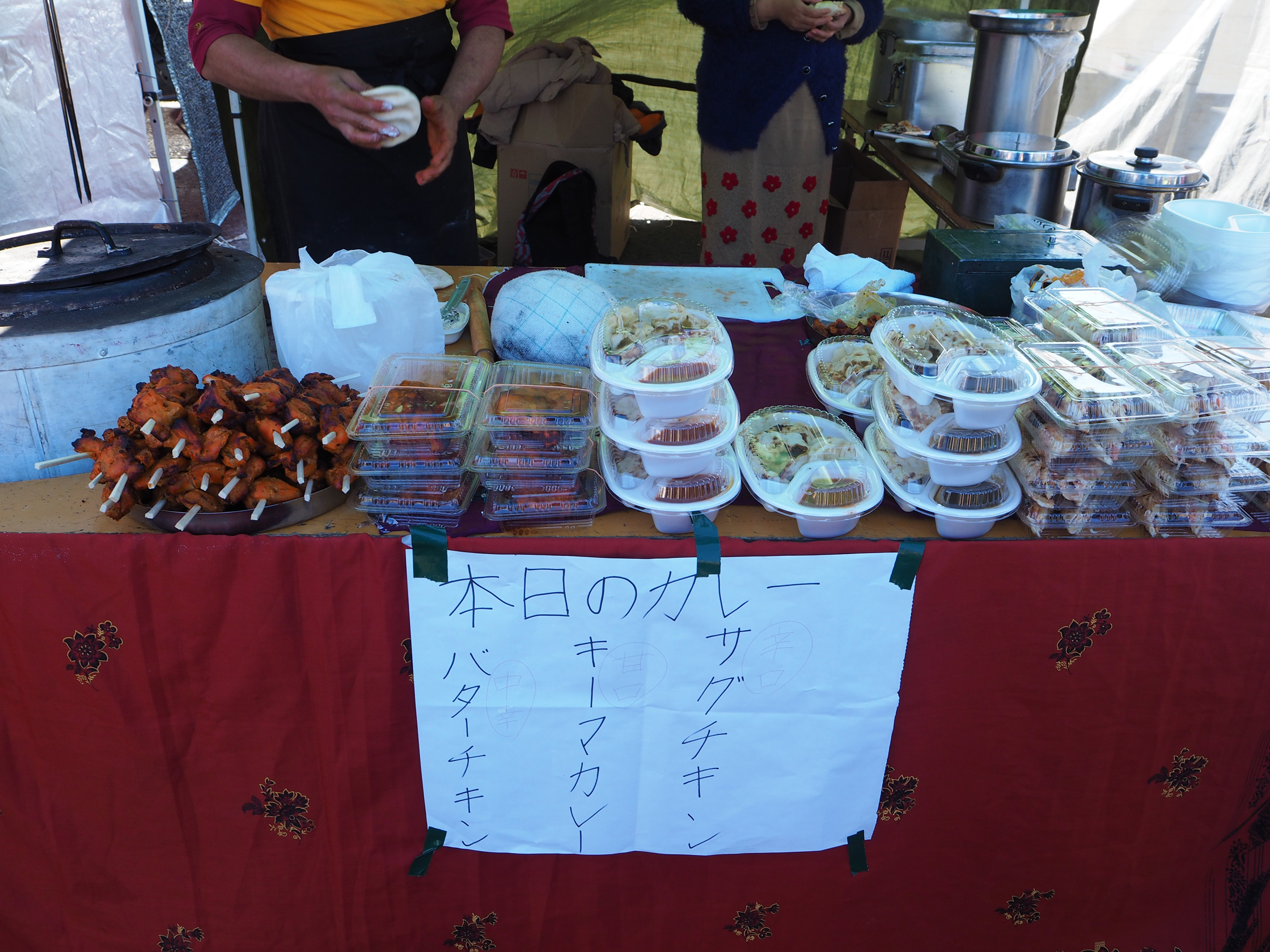 僕がついた頃には既に売り切れたのか実物を見ることはできなかったけど、店主が甥のために作ったというカブトムシやアゲハ蝶などのリアルな幼虫の形をしたグミは大人気と聞いた。手作り豆腐の店、焼き立てのパンの店、小籠包の店、塩手羽先の店、ラーメンやそばを売る店には長い行列ができていた。インド料理店でカレーを売っている男性に「1日にどれぐらい売れるの?」と聞くと、「100個ぐらい」。僕はそこで買ったタンドリーチキン(400円)にかぶりついた。