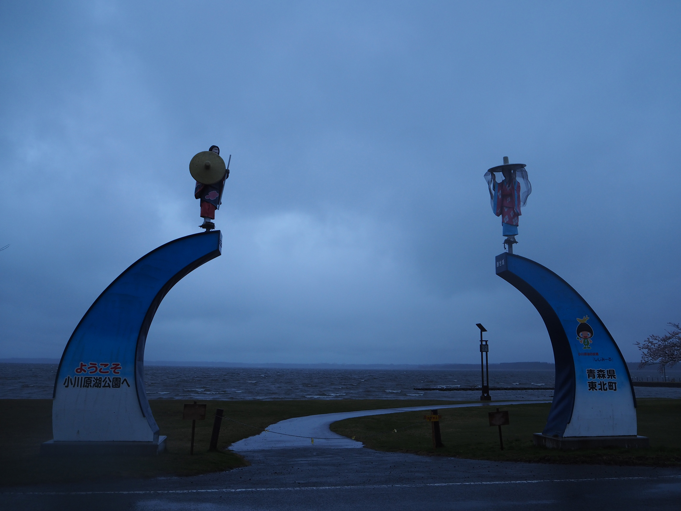 食後、「これから小川原湖に行きます」というと、蛯名さんが案内してくれた。その日の小川原湖は火曜サスペンス劇場に出てきそうなほど不穏な雰囲気の分厚い雲が垂れこめていた。強風に煽られて、波も荒れに荒れている。春の小川原湖を満喫! という僕の目論見は、これ以上ないというくらいに外れた。