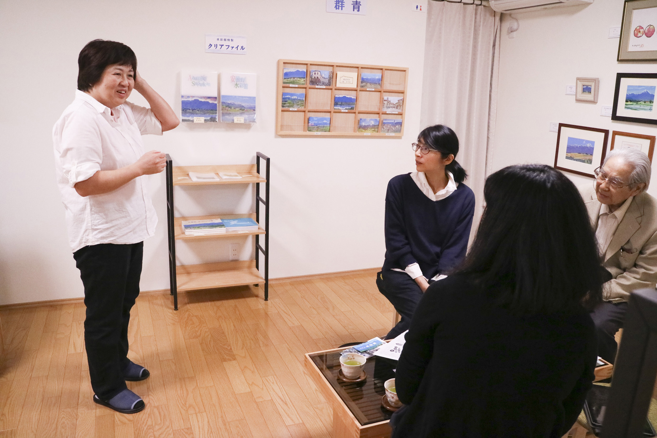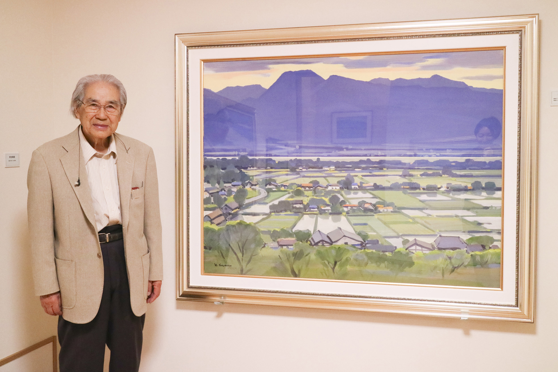 祐子さんがさっそく「『よみがえる安曇野』の8mmフィルム提供者に会いに行こう!」と言って向かった先は、安曇野らしい田園風景の中に立つ小さな美術館、「征矢野久 水彩館」だった。フィルム提供者の一人、征矢野久さんは、とてもお元気な90歳だ。美術教師だった征矢野さんは、画家として地元・安曇野の風景を水彩画で描き続けてきた。ここは、その作品を集めた個人美術館なのだ。