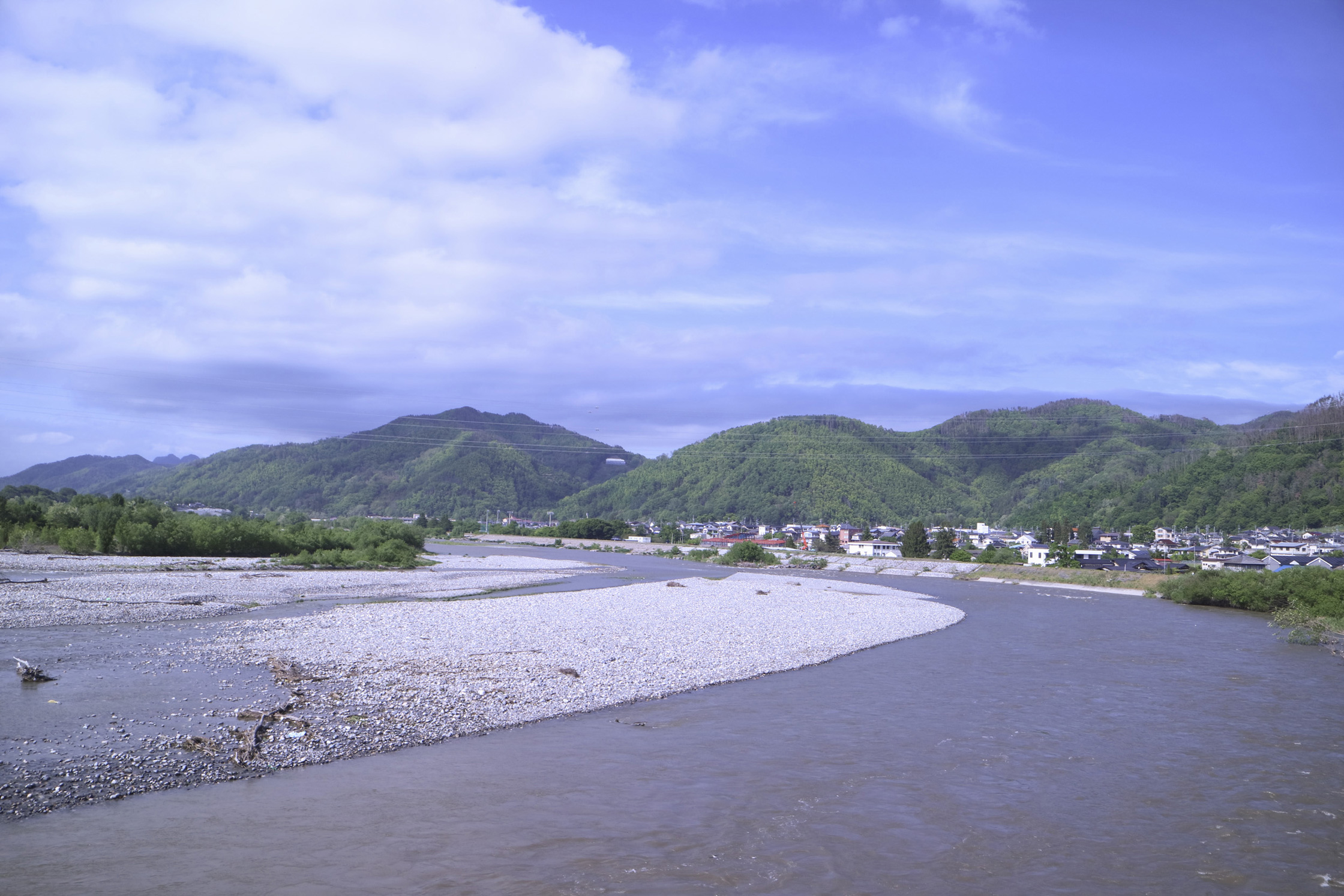 「征矢野久 水彩館」からの帰り道、犀川を渡った。「よみがえる安曇野」の中の征矢野さんが撮った川下りのシーンを思い出しながら。橋のたもとに車を止めて、橋の上から犀川を眺めてみる。この街はどこにいてもかならず北アルプスが見えて、本当にきれいだ。川のほとりのアカシアの木の白い花から、いい匂いが橋の上まで漂ってきた。