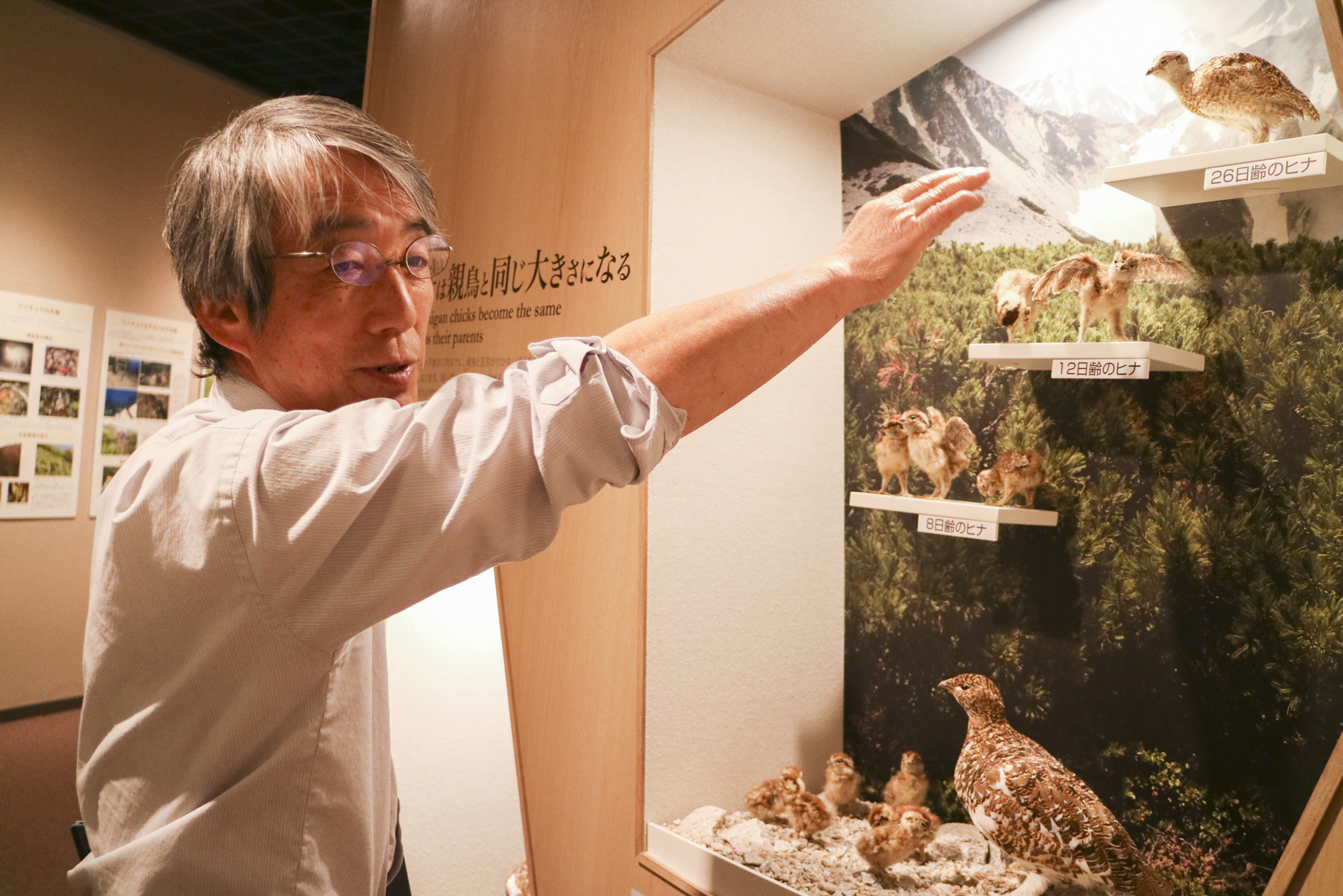 そして1975年、大学4年生の時のこと。地元の大町山岳博物館にもカモシカのデータがあるだろう、と大町に帰省したところ、山博で「ライチョウの飼育を手伝ってもらえないかな?」といわれ、夏休みの間ずっと、ライチョウの世話の手伝いをしたのだという。そして、いつのまにか興味がカモシカからライチョウへと移り、やがて山博に就職。以来ずっとこの博物館で学芸員として、ライチョウ飼育の現場に携わってきたのであった。