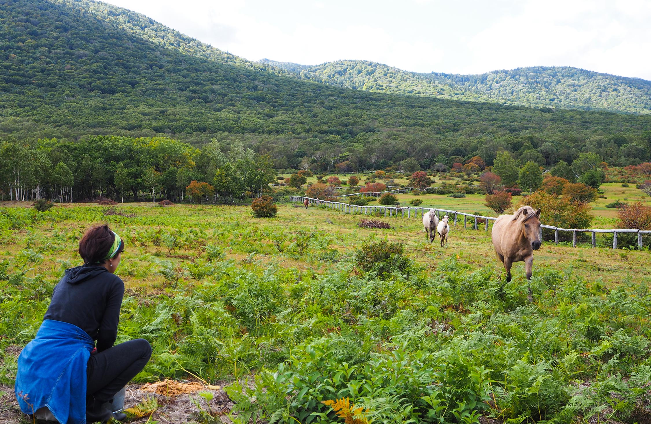 一度途絶えてしまった種は、もう復活させることはできない。そこで、安比高原ふるさと倶楽部では、安比高原に生えるさまざまな草を食べること自体を馬の仕事にして、在来種を守ろうとしている。今年の放牧は8頭で始まり、僕が取材に訪れた時にいたのは、北海道の道産子(北海道和種)3頭と長野の木曽馬。そして、その馬の管理をしているのが阿部さんだ。