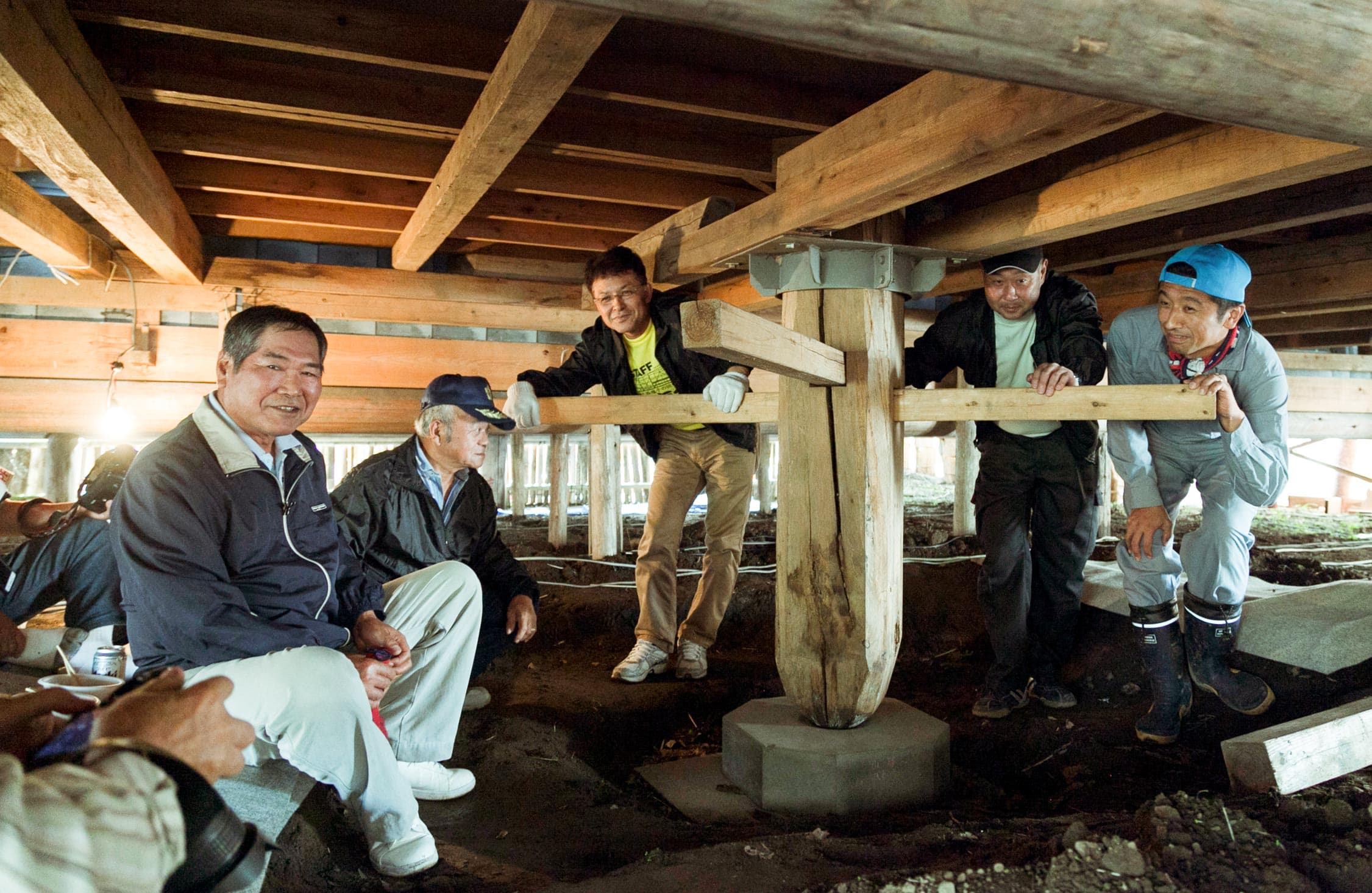 西野先生は15年前に大学の視察として第3回定期公演に訪れて、この回り舞台と西若座に出会った。その時、西野先生は「この地域にこんなに素晴らしい文化があるなんて!」とすっかり西塩子の回り舞台と農村歌舞伎に魅せられたのだという。舞台を組み立て、農村歌舞伎をつくり上げる地元の人たちの姿がほんとうに楽しそうに見えた、という西野先生。それからというもの、この地域に学生を連れて、ボランティアを続けているのだ。