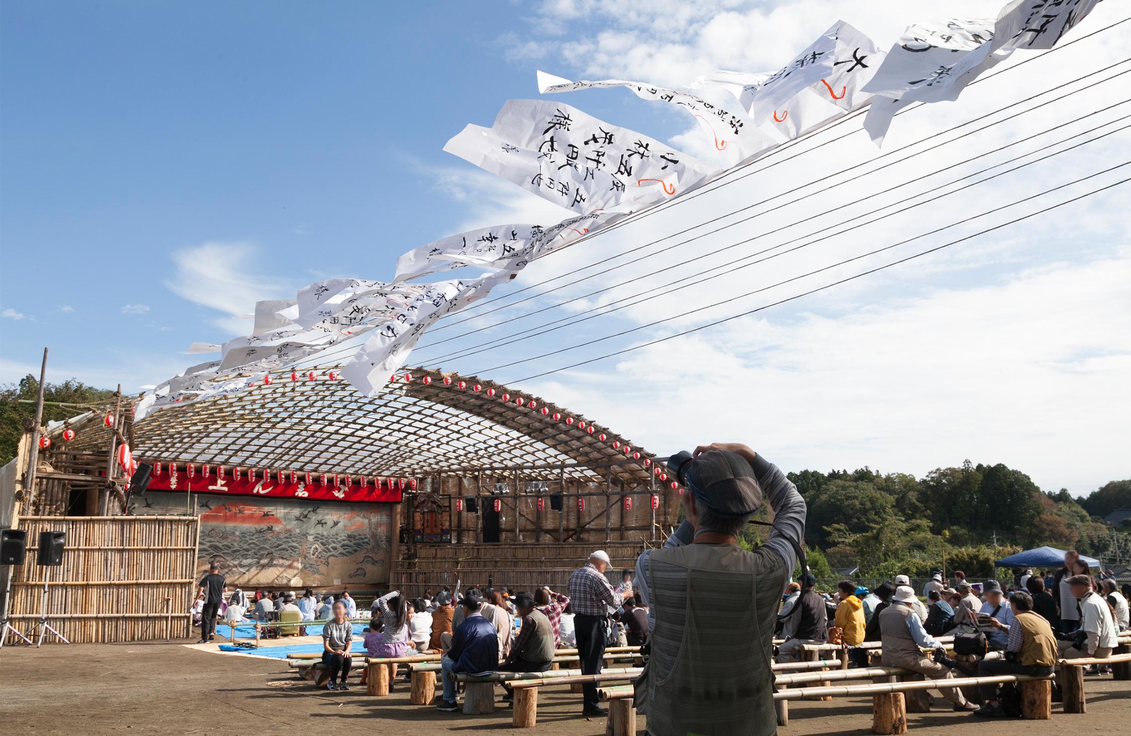 秋晴れの朝、久慈川沿いに車を走らせる。茨城県常陸大宮市の西塩子地区で三年に一度だけ開かれる農村歌舞伎「西塩子の回り舞台」の第7回定期公演を見に行くためだ。なんと二百年前から続いているというこの農村歌舞伎では、組立式の舞台を、たった一日限りの定期公演のために、地域の人々が総出で、二ヶ月かけて組み立てるのだという。