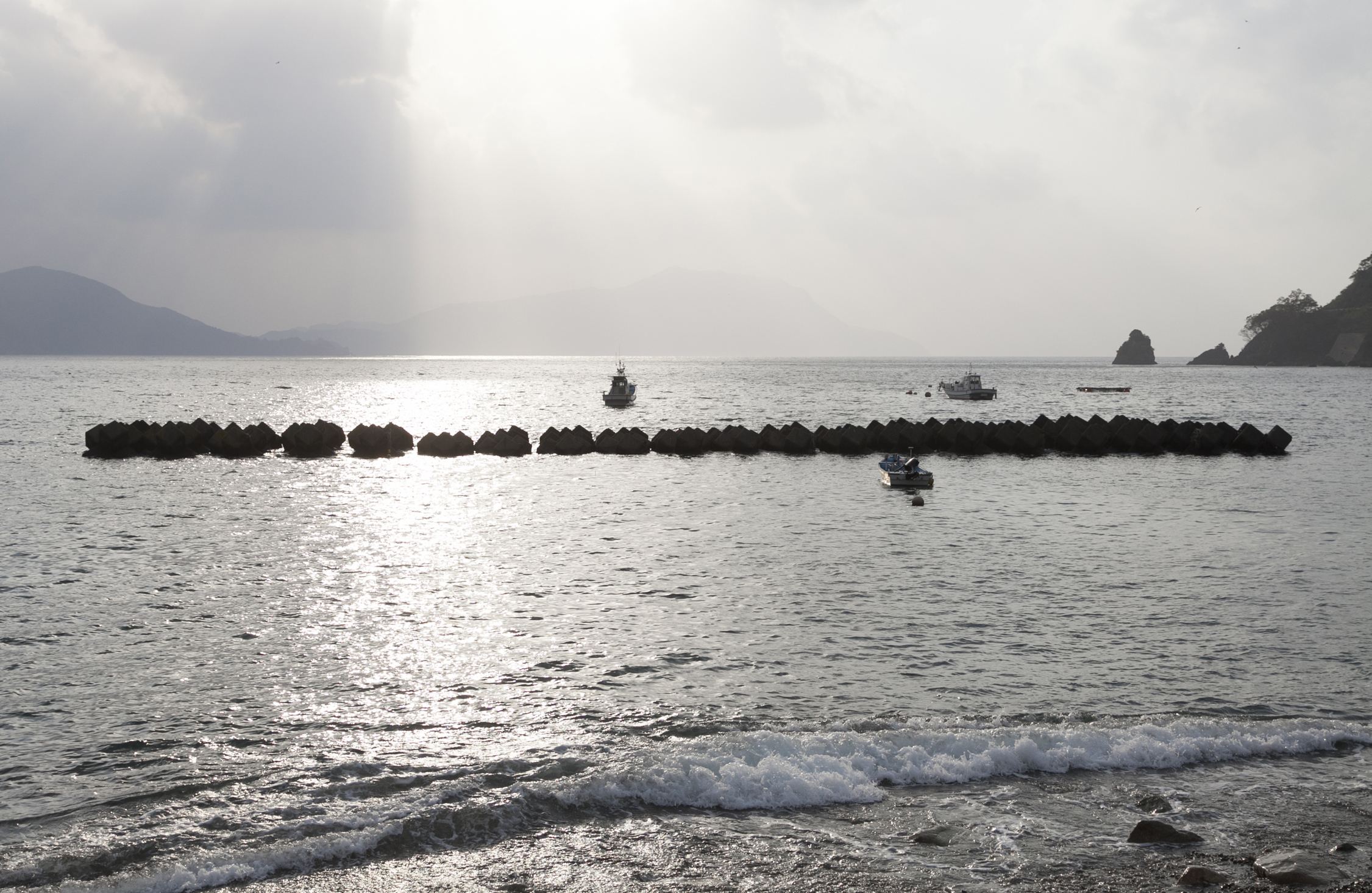 このトンネルのすぐ裏側には水月湖があるなんてちょっと想像が追いつかない。なんだか不思議な感覚だった。山と湖を過ぎてきたばかりなのに、今こうして目の前には雄大な海がある。波の音を聞きながら、こんな地形があるんだ! と思った。