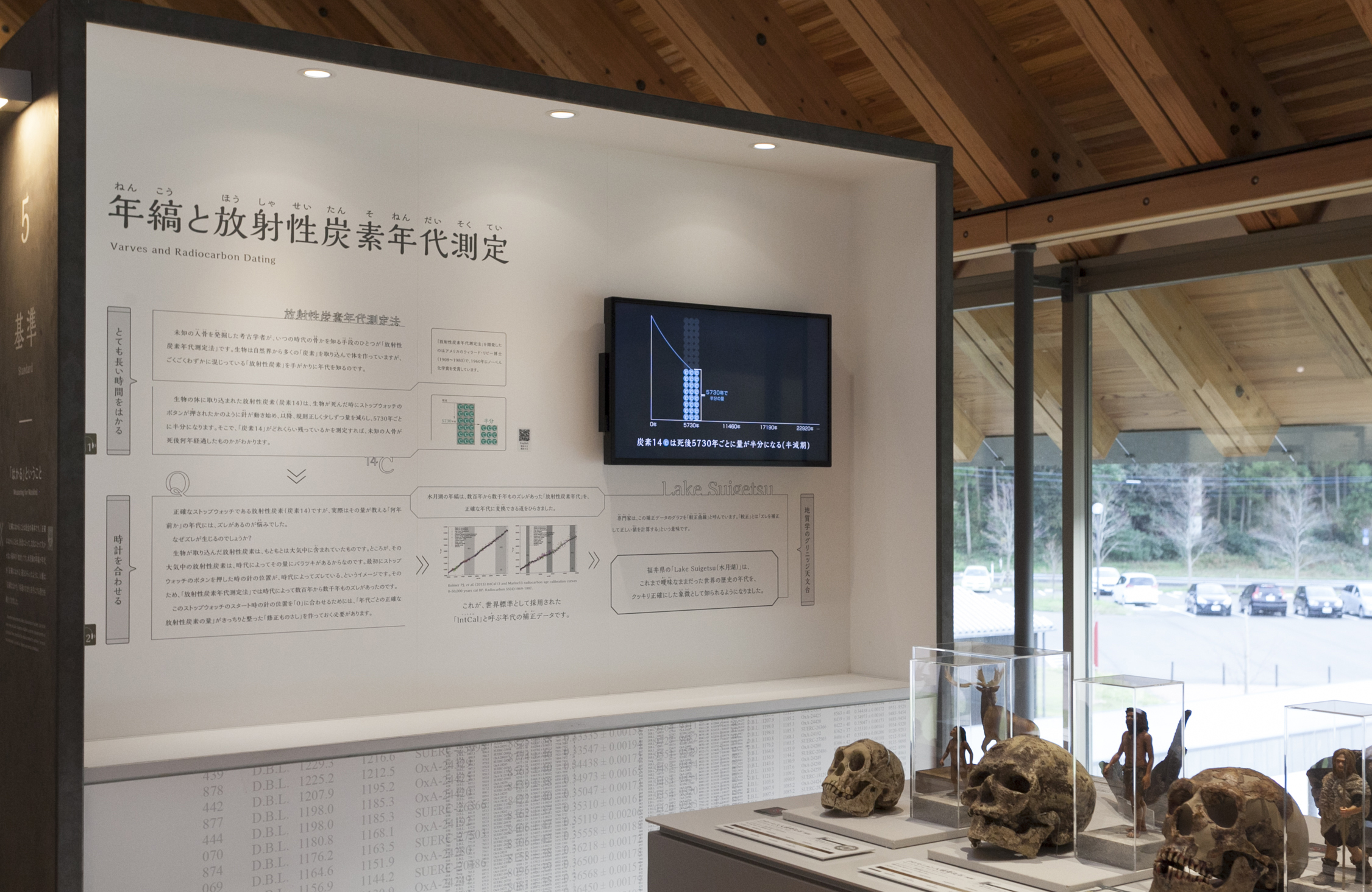 一方、水月湖の年縞は途切れなく堆積しているため、縞の数を数えればいつの年のものかほぼ特定できるし、さらに年縞に含まれる葉の化石の炭素14を測定することでその年代の炭素を正確に測定することができるようになった。これによって世界中で測られた放射性炭素年代は水月湖のデータと対比することで、水月湖の何枚目の縞に含まれた葉の化石に相当し、いつの年代のものなのか? ということが詳しくわかるようになったのだという。