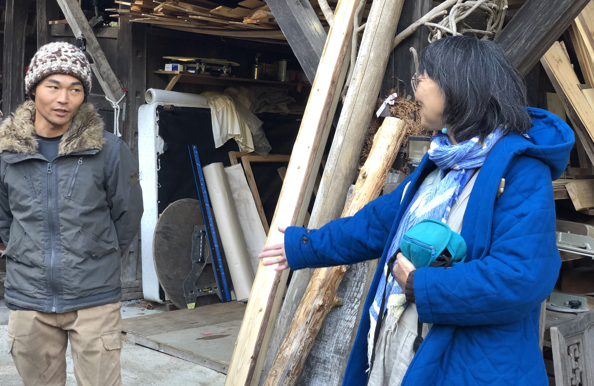 石毛さんが家具作りに使うのは、裏山の皮むき間伐で自然乾燥させた木。「高温で素早く乾燥させた木材は、耐久年数が30年くらいだと最近分かってきたそうです。逆に、ゆっくり自然に乾燥した木材は、400年かけて強くなって、400年かけて少しずつ弱くなっていくそうです」と石毛さん。効率がいいと思っていたことが、ちゃんと検証すれば実は不経済だったという例は、他にもたくさんありそうだ。