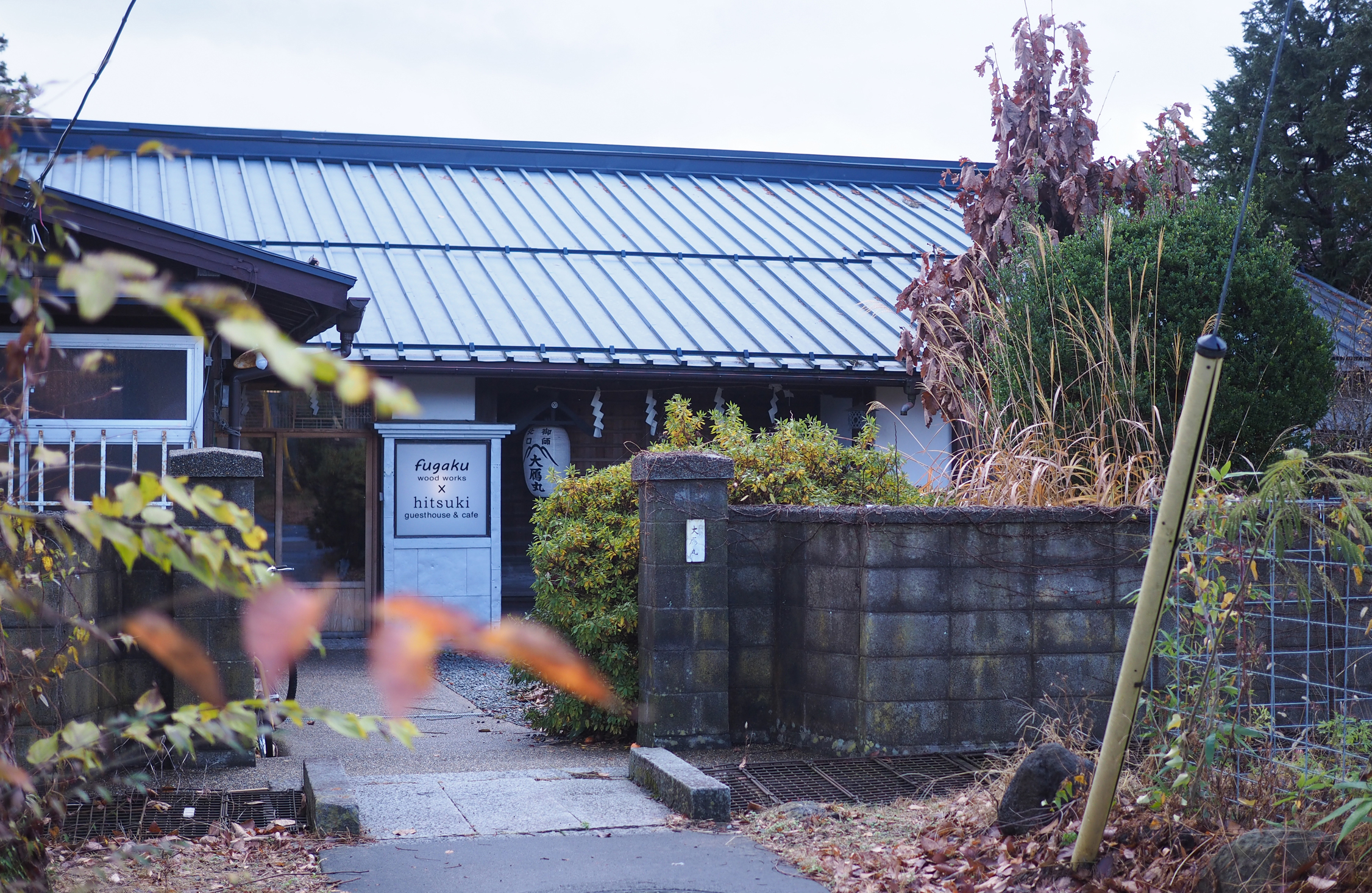 お話を伺いに、私が訪れたのは「fugaku wood works × hitsuki guest house & cafe」。18代目御師である大鴈丸一志(おおがんまる ひとし)さんと奥さんの奈津子さんが、衰退していく御師の文化を守ろうと、実家の御師の家を複合型ゲストハウスとして蘇らせた場所だ。