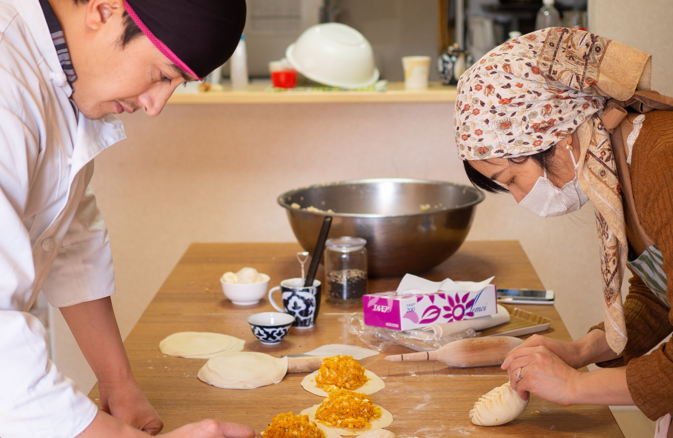 キッチンで手を動かしながら答えてくれる香織さんに発送範囲を聞くと、北海道から沖縄まで文字通り日本全国! 香織さんによれば、現在日本には、6000人弱の中央アジア人がいる。日本に定住している人の他に、大学や日本語学校に通う留学生も多いそうだ。お正月に故郷の味が恋しくなったり、イスラム教の断食月「ラマダン」の日没後の食事では特に注文が増えるという。確かに、私も海外に行くとまず恋しくなるのは白米だ。それほど、ノンやサムサは中央アジアの人々にとって欠かせないものなのだ。