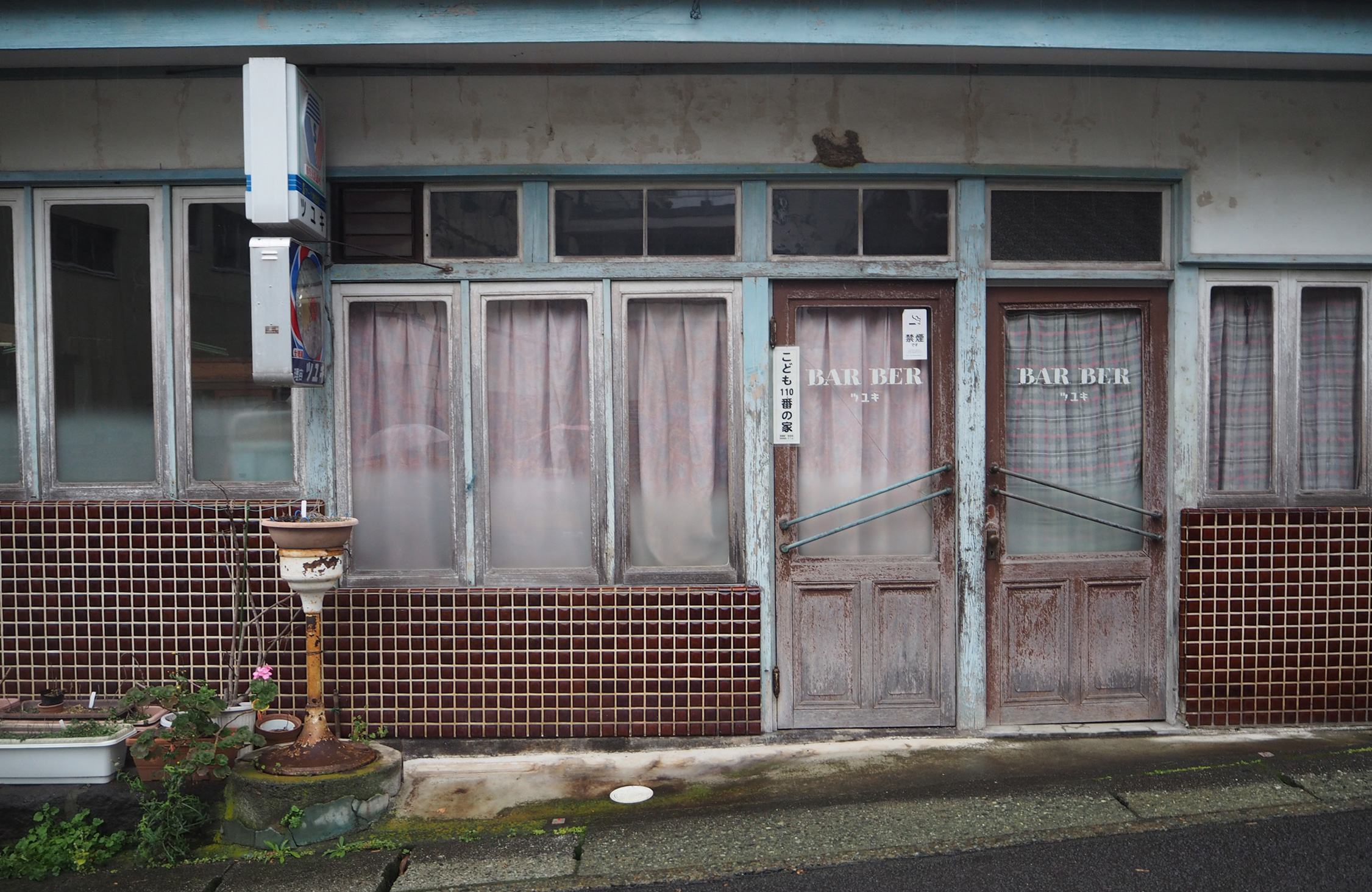 路地を抜けると、ツアーは市街地に入り、お肉屋さん、干物屋さん、酒屋さんなどの小さな商店が続く。高い建物がなく、昔ながらの床屋さんや古い看板、木の電柱などが残る風景はノスタルジックだ。