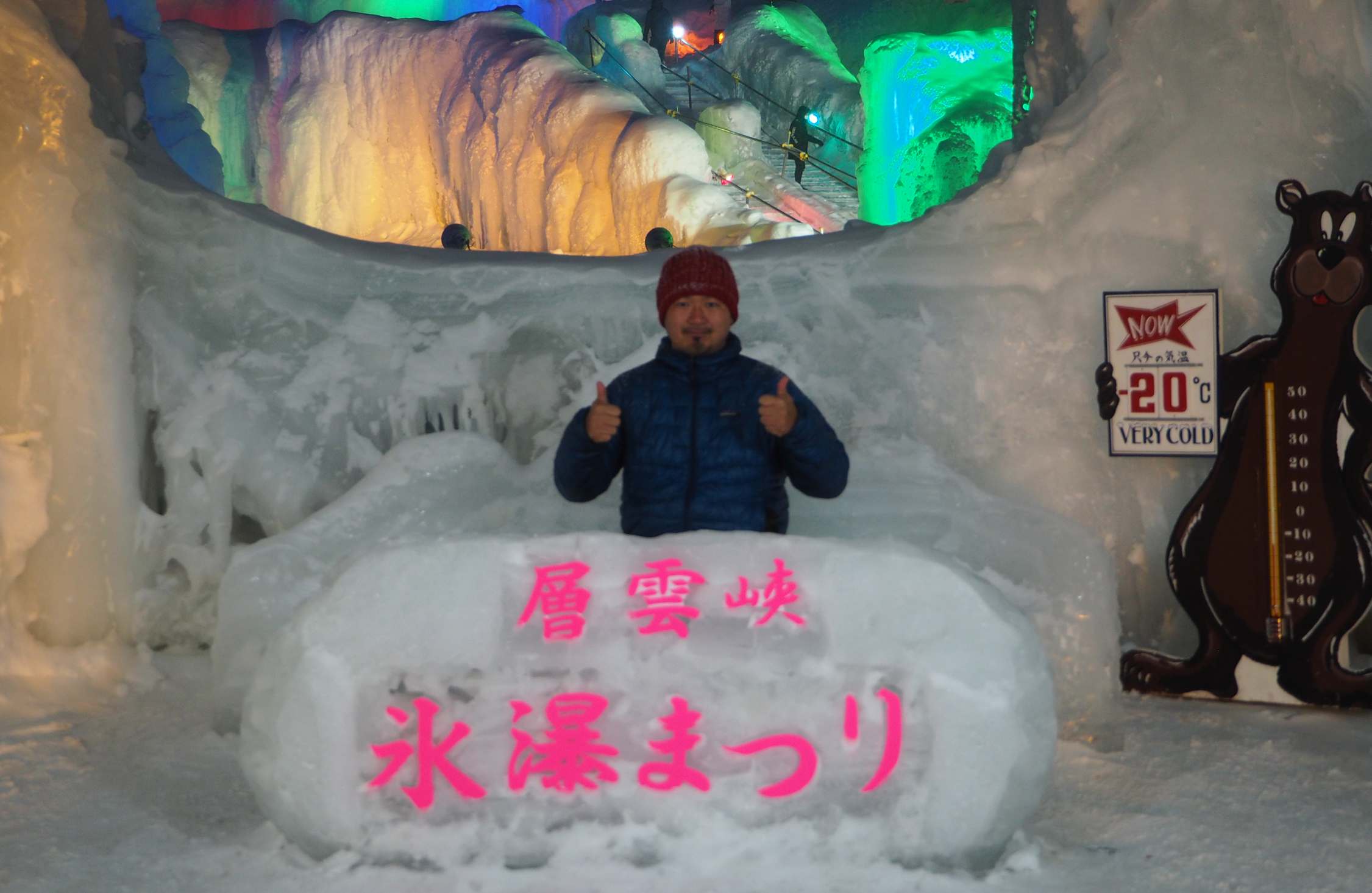 標高600メートルの山間にある層雲峡は荒々しい山に挟まれた大渓谷で風光明媚、大雪山系のひとつである黒岳への登山口もあるため、北海道有数の温泉街として発展した。しかし、課題がひとつ。層雲峡観光協会の事務局長、中島慎一さんによると、雪深い冬の時期は旅行者が激減し、「観光客よりも従業員のほうが多い」状態になっていたそうだ。冬も層雲峡に来てほしい。町の人たちの願いを込めて始まったのが、氷瀑まつりだった。