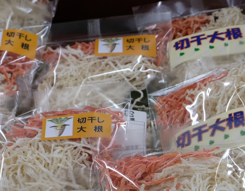 店内を歩いてみると、うど、春キャベツ、人参など、旬の野菜が並ぶが、ちょっとおもしろいラインナップにも目が止まる。新鮮な野菜の横にあって目を引いたのは、多種多様な乾燥野菜。売れ残った野菜は無駄にしないために乾燥野菜にすることが多いそう。