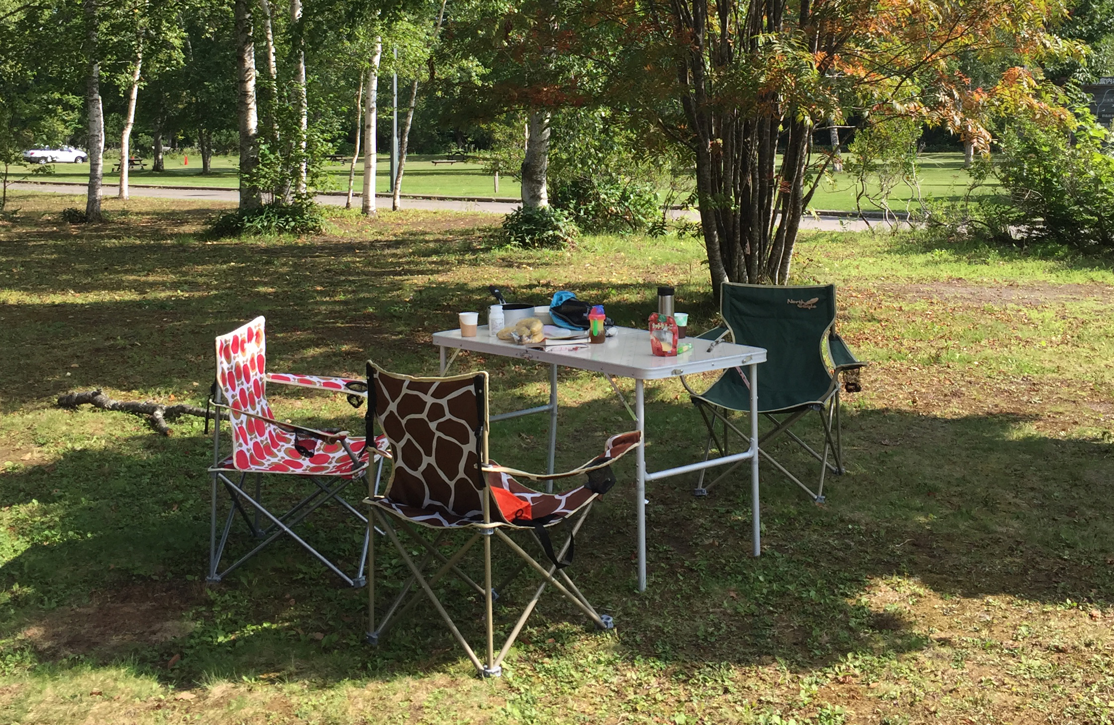 私たちはテーブルと椅子を草の上にセットし、コーヒーを入れた。
