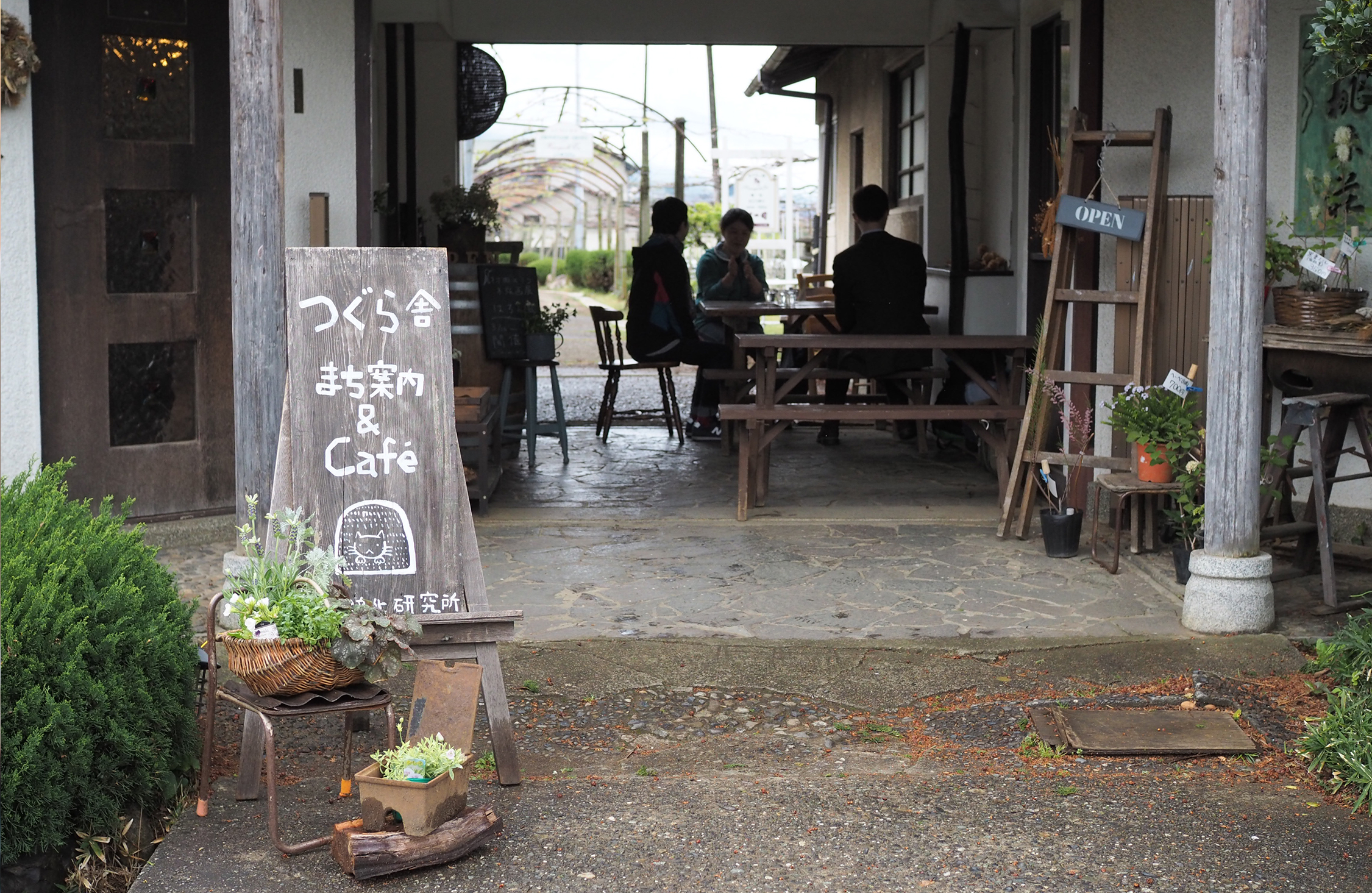ライブ会場となったのは、甲州市勝沼にある古民家カフェ『つぐら舎』。裏手には大きなぶどう畑が広がっていて、ここで『つぐら市』と呼ばれるマルシェをはじめとした、さまざまなイベントを開催している。店主の小出順子さんがもともと甲州市の観光協会と広報課に勤務していたこともあり、町の中と外をつなぐ観光案内所のような役割を担っているのだ。