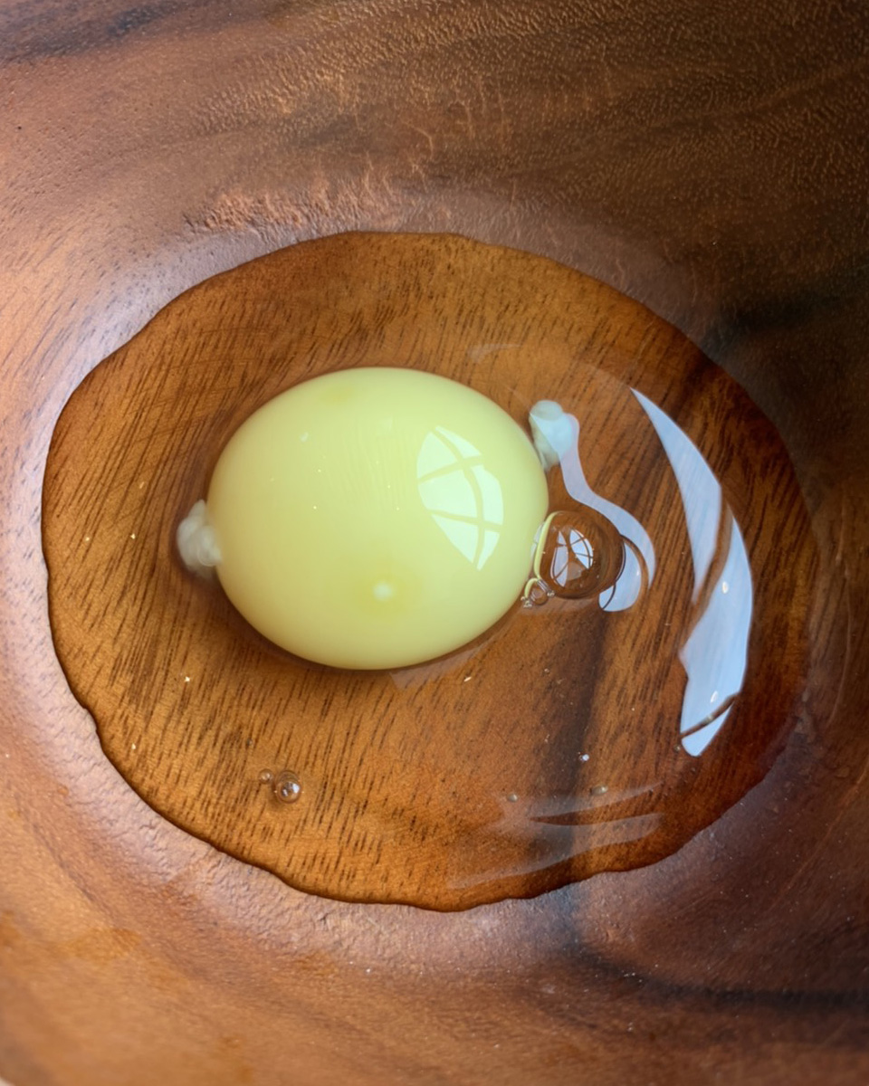 その卵はクルックフィールズで飼われている鶏が生んだもので、鶏たちは広々とした鶏舎で自由に動けるように平飼い(地面の上で飼う方法)されている。しかも、市販の配合飼料は一切使わず、規格外で出荷できない農場の有機野菜、米ぬか、おから、麦などを自家配合した栄養満点の餌を食べているから、卵が尋常じゃない旨味を持っているのだ。