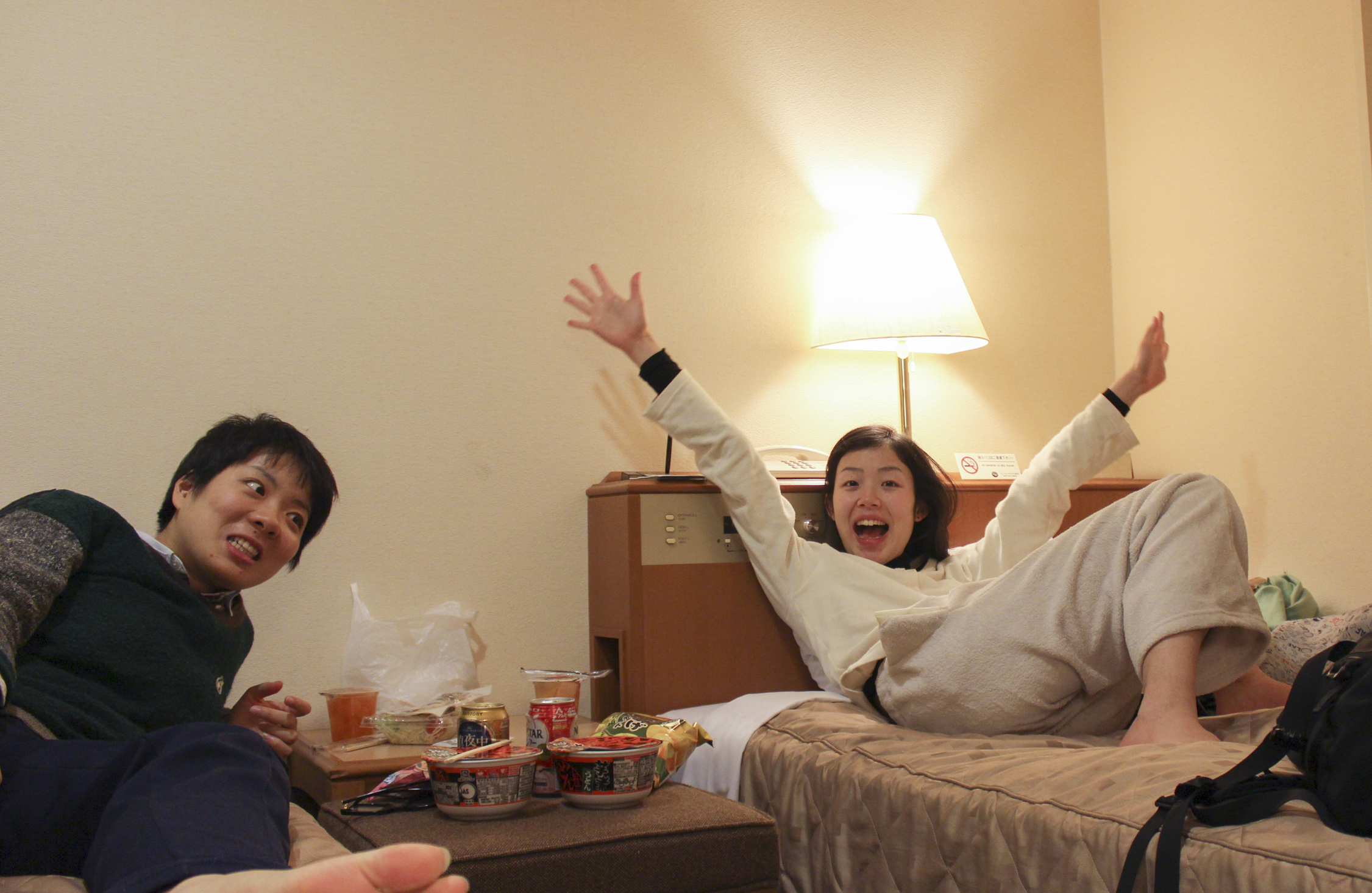 コンビニで買ってきていた、東北限定のどん兵衛「芋煮うどん味」を食べる。飛び跳ねても怒られないベッドの上でジャンプして、「なんて楽しい旅だろう」を笑い合った。何かおもしろいものがあるわけでもないビジネスホテルの一室で、私たちは夜遅くまではしゃいでいた。