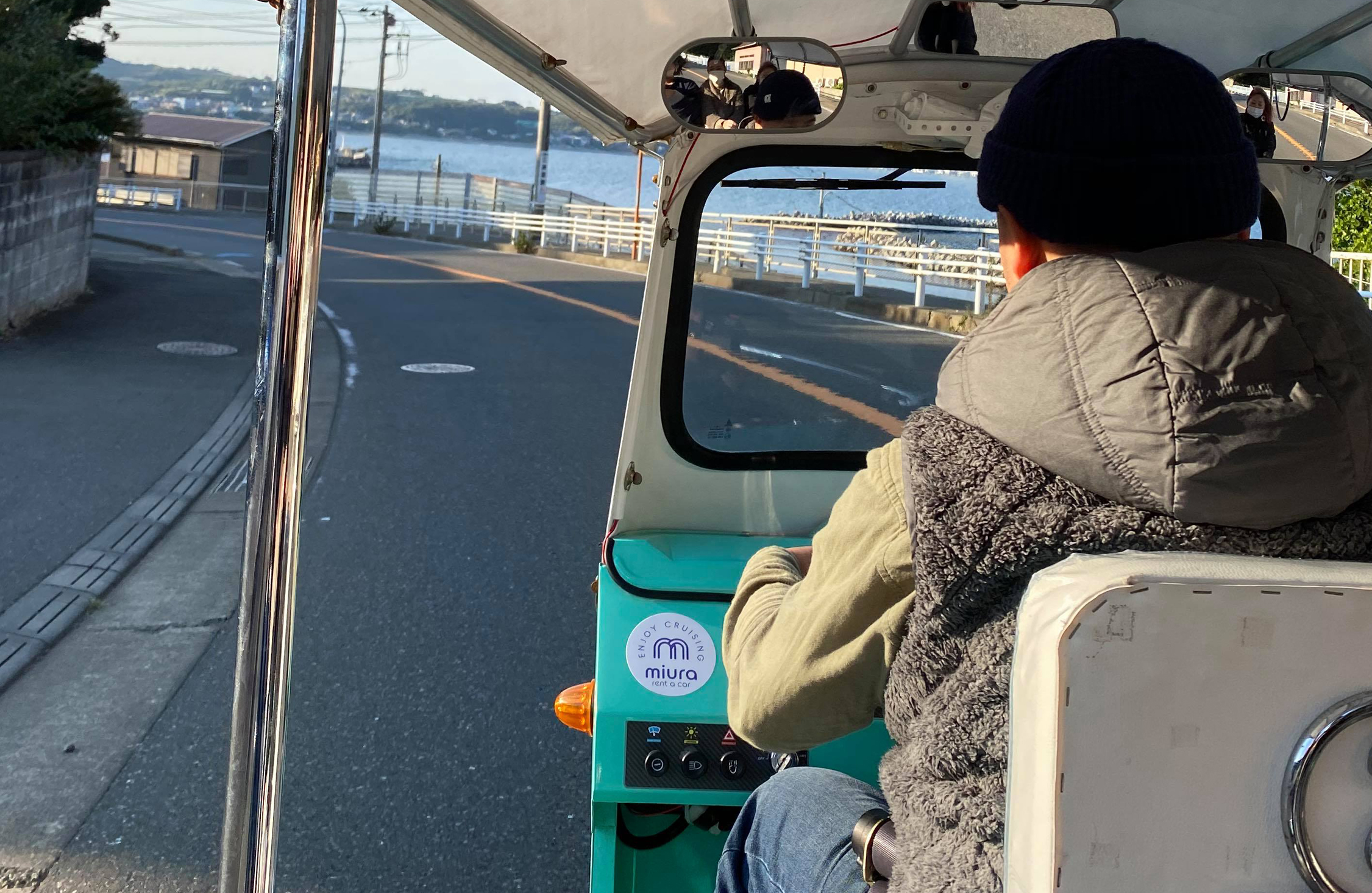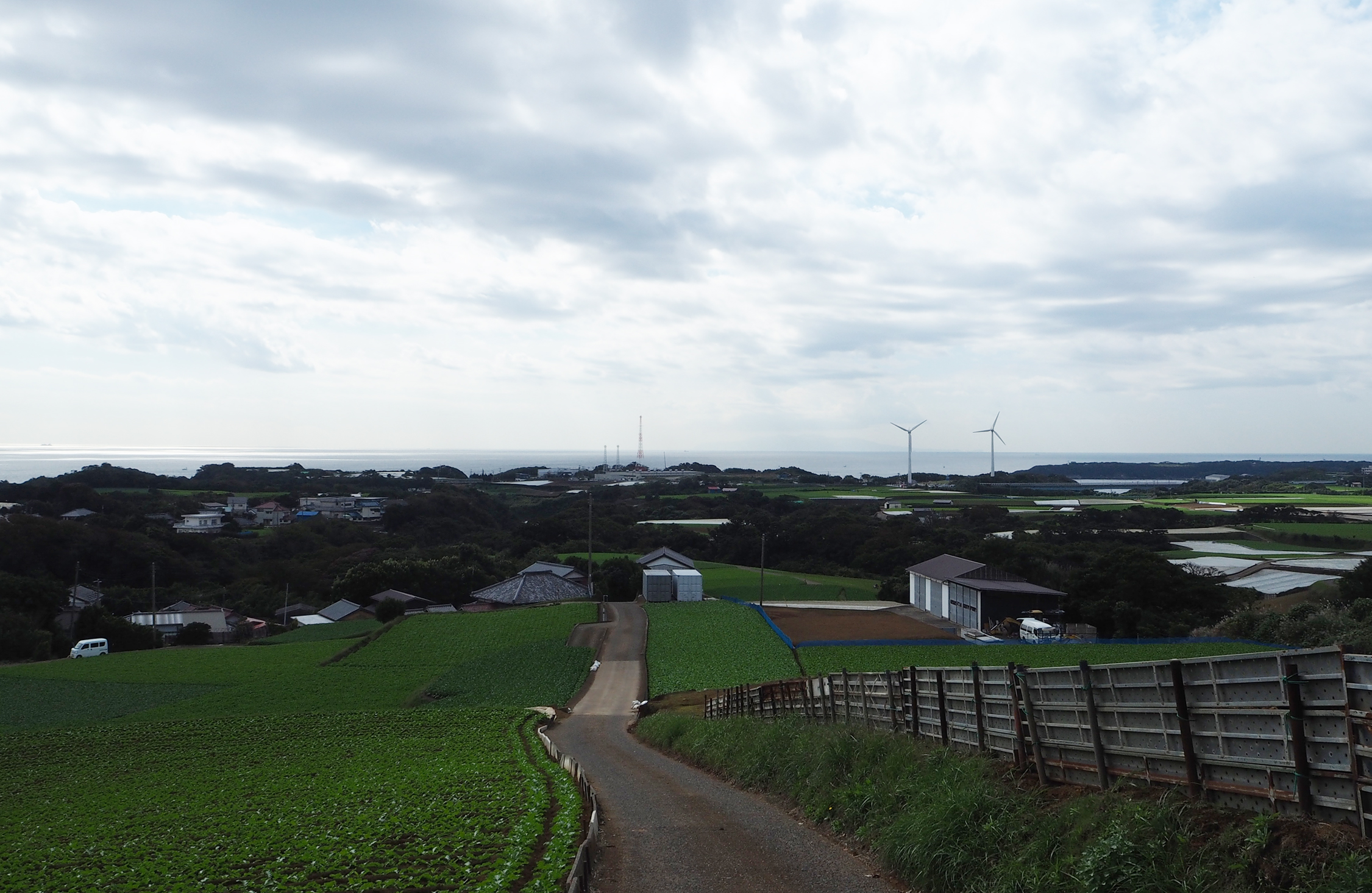 岩堂山につくと、特産の三浦大根など秋冬物の野菜たちが元気に育っていて、眼下にはグリーンがいっぱい。少し曇っていたけど、畑の緑の先の海まで一望できる景色は確かに深呼吸したくなる気持ち良さだった。