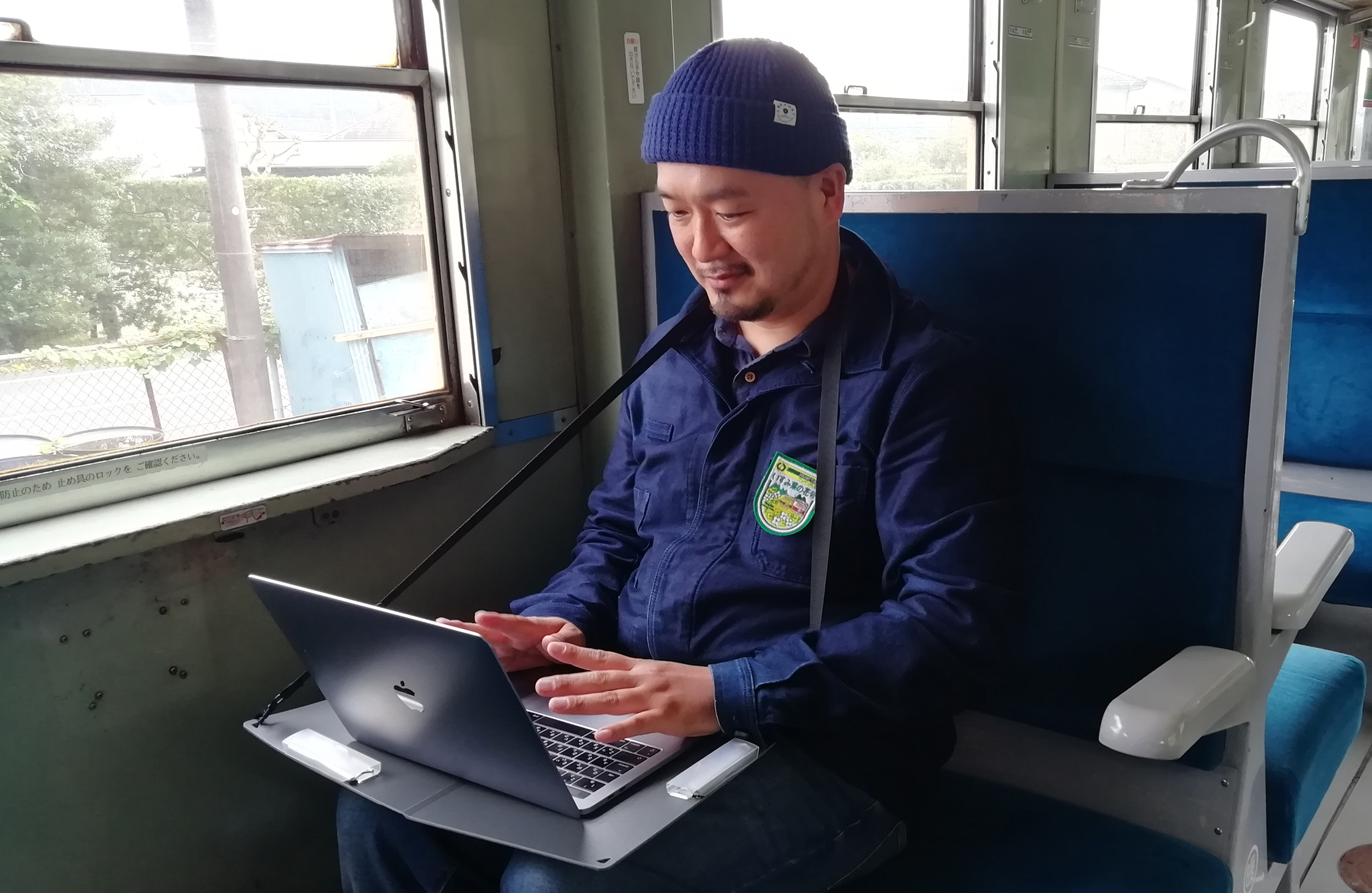 「テーブルがあるからお弁当を食べたり、ドリンクを飲みながら仕事できるのがいいですよね。いすみ鉄道でしかできないことですし」