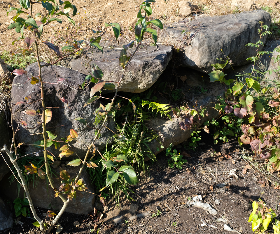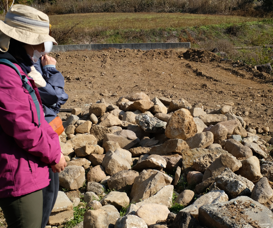 さて、私たちが運んだ「石」について、この日私は見方が変わった。ここには、寿香さんの引越しの決め手になったという立派な石積みがあるし、土木作業に使うようなゴツゴツした大きな石がひとかたまりになって置かれている。
