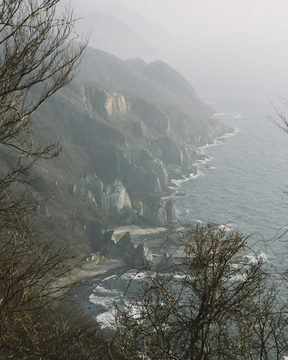 「こんなピュアなパラダイスが北の果てにあるのか!」と俺たちは目を輝かせ、旅の締めくくりに訪れよう決心したのだ。しかし高波が岩肌を激しく打ち、木々が色を失った冬の仏ケ浦に、そのような楽園モードは微塵もなく、代わりに別の惑星に不時着したような殺伐とした光景が広がっている。「随分写真と違うな」「確かに」とKとSが呟く。俺は気を取り直そうと「これでいいじゃないか。世間でも家庭で荒波にさらされ、常に骨身を削る。中年男にお似合いだろ!」