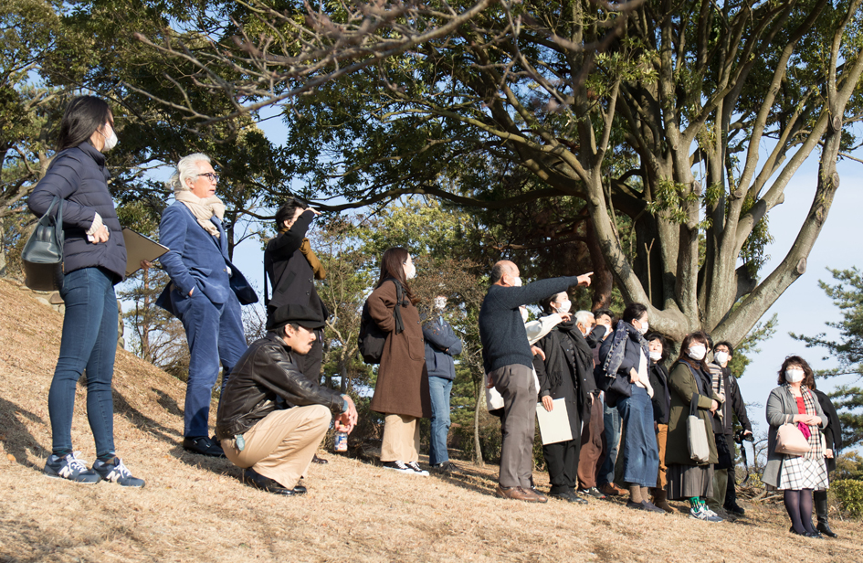 ワークショップの内容としては、大きく二つに分けた。一つはスミスの写真芸術について、参加者と共に深く考えてみること。まず大森さんの研究とスミスの写真について、スライドなどを見ながらトークしてもらった。そして、実際にスミスが撮影したとほぼ特定できる場所から、日立の風景を参加者と共に眺めることで、スミスの写真の本質について考えた。