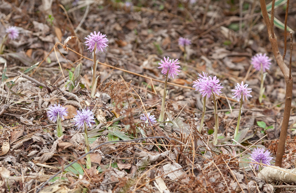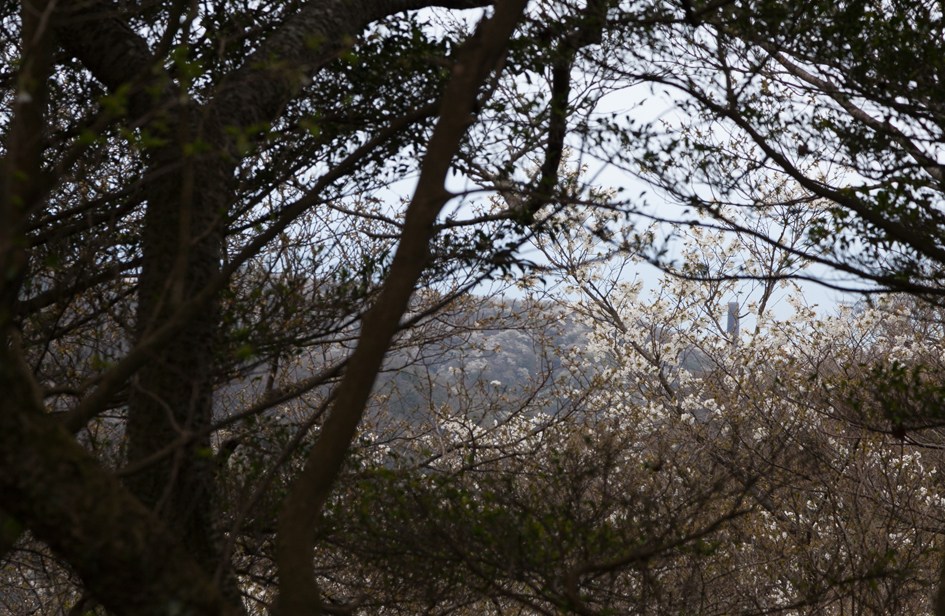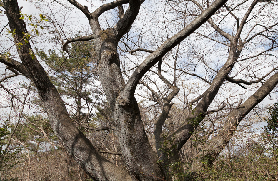 標高598メートルの神峰山に向かってもう一踏ん張り、登っていく。神峰山に向かう山道のそこかしこにあるオオシマザクラは、これまでの山道と違って、まだ咲いていない樹木が多い。「植物の多様性ですね」と田上さんが言う。